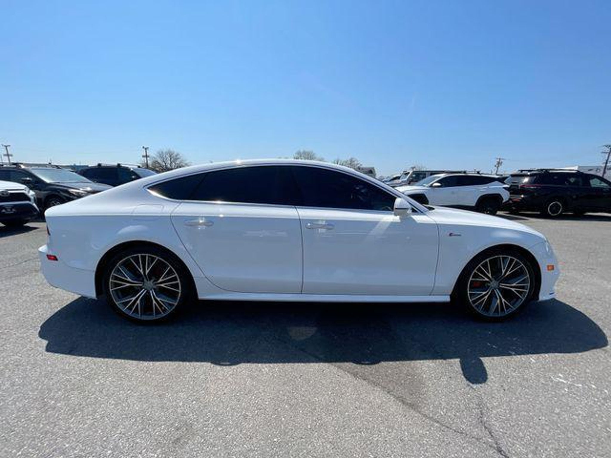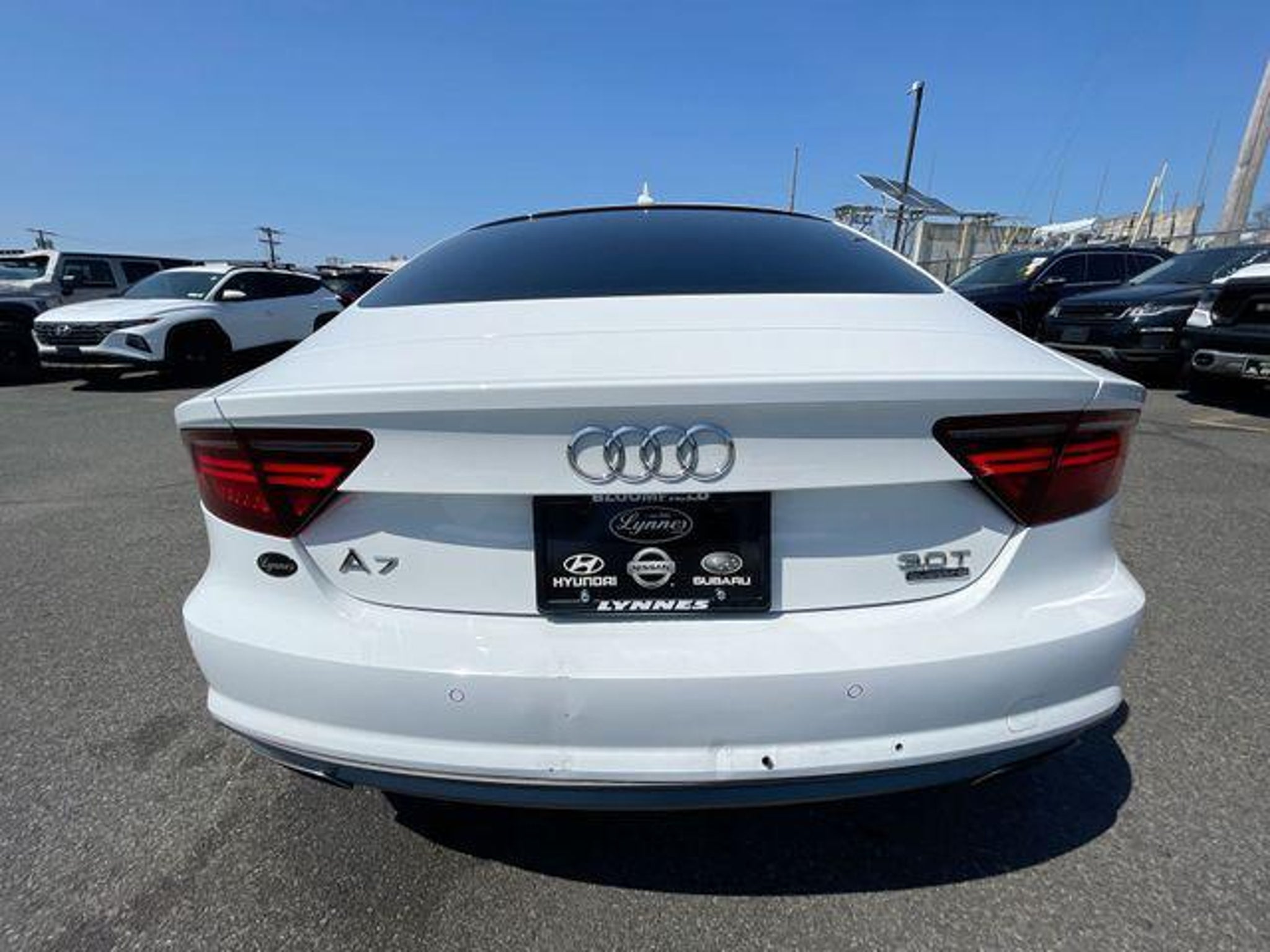 This 2018 Audi A7 has passed the Lynnes comprehensive 172 point inspection with flying colors. Our ASE certified technicians have inspected this A7 and have brought it up to date with all its regularly scheduled maintenance. Buy this A7 and have confidence that it will bring you years of reliable Transportation. Priced below KBB Fair Purchase Price! Odometer is 51772 miles below market average! 2018 Audi A7 3.0T Premium Plus quattro Ibis White quattro 8-Speed Automatic with Tiptronic quattro 3.0L V6 Turbocharged DOHC 24V ULEV II 340hp 20/29 City/Highway MPG Drive Home Happy Promise, New Beginning Automotive Financing - Our Goal 100% Credit Approval, 14 Speakers, 4-Wheel Disc Brakes, ABS brakes, Adaptive Cruise Control w/Stop & Go, Air Conditioning, Alloy wheels, AM/FM radio: SiriusXM, Anti-whiplash front head restraints, Audi Active Lane Assist, Audi Beam-Rings, Audi Guard All-Weather Floor Mats, Audi Guard Cargo Mat, Audi Pre Sense Plus, Audi Smartphone Interface, Auto tilt-away steering wheel, Auto-dimming door mirrors, Auto-dimming Rear-View mirror, Automatic temperature control, Bose Surround Sound System w/Subwoofer, Brake assist, Bumpers: body-color, CD player, Cold Weather Package, Compass, Delay-off headlights, Driver Assistance Package, Driver door bin, Driver vanity mirror, Dual front impact airbags, Dual front side impact airbags, DVD-Audio, Electronic Stability Control, Exterior Parking Camera Rear, Four wheel independent suspension, Front anti-roll bar, Front Bucket Seats, Front Center Armrest w/Storage, Front dual zone A/C, Front fog lights, Front reading lights, Garage door transmitter: HomeLink, Genuine wood console insert, Genuine wood dashboard insert, Genuine wood door panel insert, Heated door mirrors, Heated Front Bucket Seats, Heated front seats, Heated Rear Seats, Heated Steering Wheel, High-Beam Assistant, Illuminated entry, Knee airbag, Leather Seating Surfaces, Leather Shift Knob, Leather steering wheel, Low tire pressure warning, Memory seat, Navigation System, Occupant sensing airbag, Outside temperature display, Overhead airbag, Panic alarm, Passenger door bin, Passenger vanity mirror, Power door mirrors, Power driver seat, Power Liftgate, Power moonroof, Power passenger seat, Power steering, Power windows, Radio data system, Radio: Audi MMI Navigation Plus w/AM/FM, Rain sensing wipers, Rear air conditioning, Rear anti-roll bar, Rear dual zone A/C, Rear fog lights, Rear reading lights, Rear seat center armrest, Rear window defroster, Remote keyless entry, S Line Exterior w/Supercharged Badges, S Line Sport Package w/Black or Nougat Brown Int, Security system, SiriusXM All Access Service, Speed control, Speed-sensing steering, Speed-Sensitive Wipers, Split folding rear seat, Spoiler, Sport Suspension, Steering wheel memory, Steering wheel mounted audio controls, Tachometer, Telescoping steering wheel, Tilt steering wheel, Traction control, Trip computer, Turn signal indicator mirrors, Variably intermittent wipers, Wheels: 8.0 x 19 5-Spoke V Design, Wheels: 9.0 x 20 Bi-Color 5-Spoke W Design. Type your sentence here.