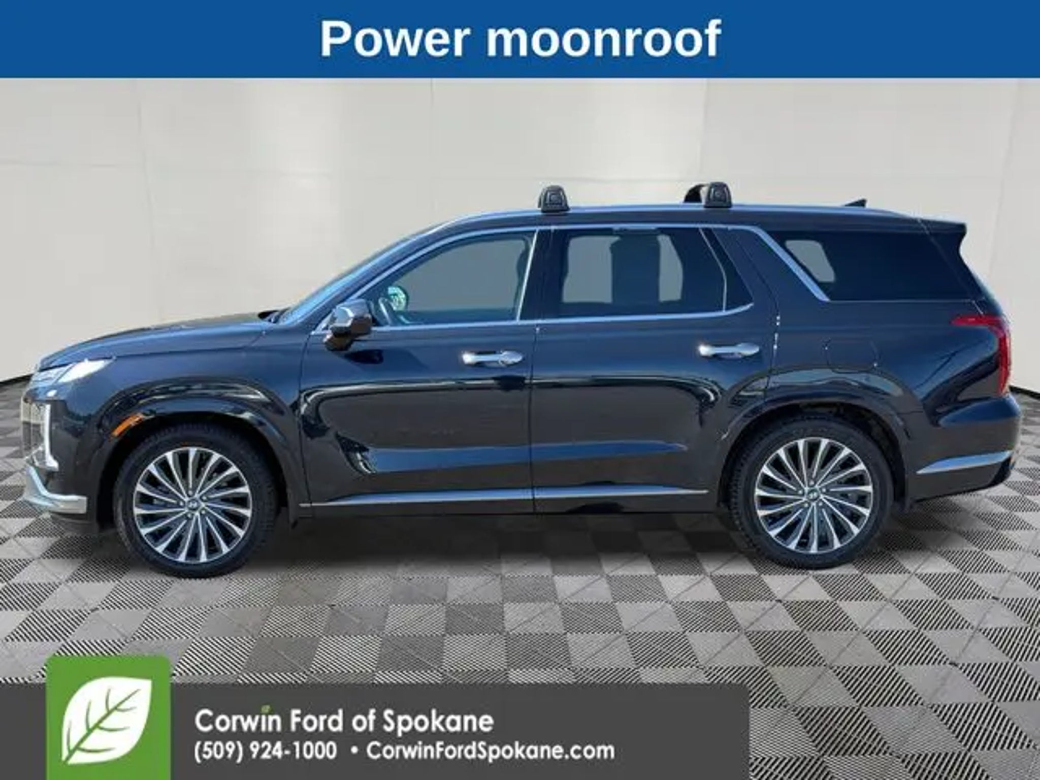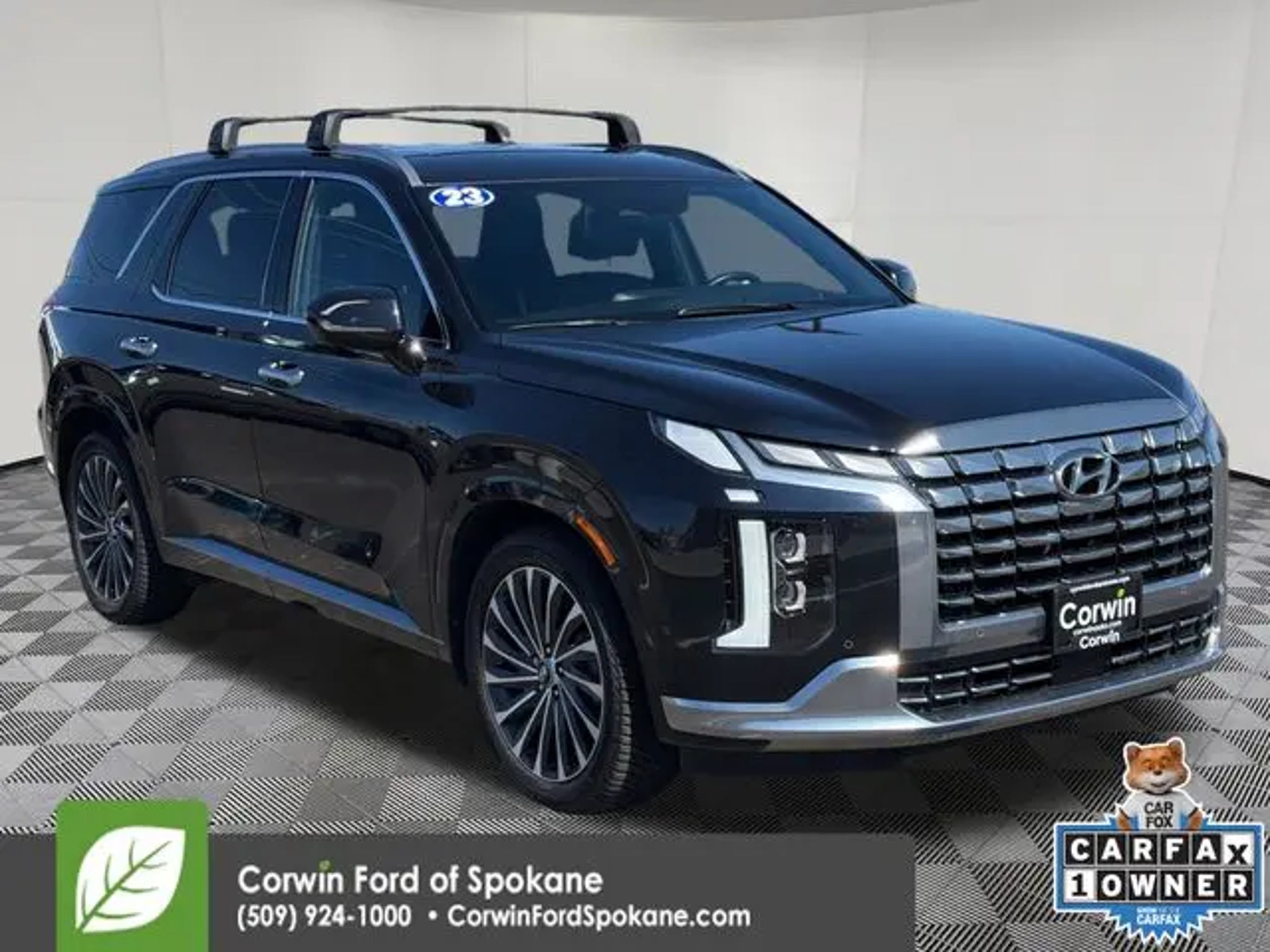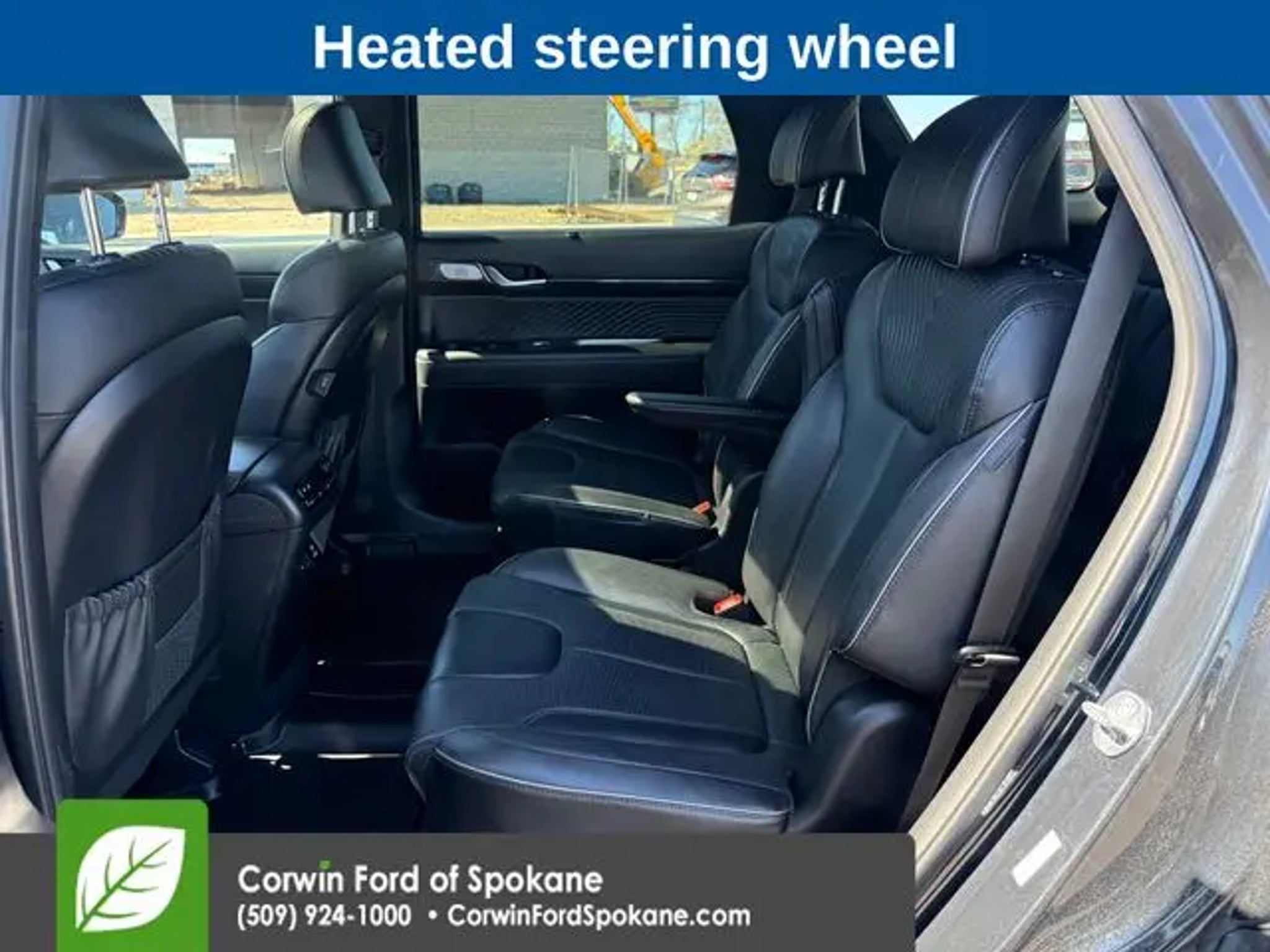 The 2023 Hyundai Palisade Calligraphy is a remarkable SUV that offers unparalleled style, comfort, and capability. With its sleek exterior design, spacious interior, and advanced technology, this vehicle is the perfect choice for the discerning driver. - 360 degree Camera - Remote Start - Harman/Kardon Premium Sound System - Front Dual Zone A/C - Memory Seat - Remote Keyless Entry - Power Hands Free Liftgate - Heated Steering Wheel - Illuminated Entry - Heated & Ventilated Front Bucket Seats - Heated Rear Seats - Power Moonroof The Palisade Calligraphy's impressive V6 engine, paired with an 8-speed automatic transmission and all-wheel drive, delivers exceptional performance and fuel efficiency, with an EPA-estimated 19 city/25 highway MPG. The advanced safety features, including Blind Spot Monitoring, Rear Cross-Traffic Alert, and Forward Collision-Avoidance Assist, provide you and your passengers with the ultimate peace of mind. Step inside the Palisade Calligraphy and you'll be greeted by a luxurious cabin adorned with premium Nappa leather seating, a stunning 12.3-inch touchscreen display, and a host of connectivity features, including Apple CarPlay and Android Auto. The spacious third-row seating and generous cargo capacity make this SUV the perfect companion for your family adventures. Experience the exceptional craftsmanship and attention to detail that sets the 2023 Hyundai Palisade Calligraphy apart. Schedule a test drive today and discover why this remarkable SUV is the perfect choice for your next vehicle. See us today at Corwin Ford Spokane. Family owned for over 100 years! Excellent selection of New and Used vehicles, Financing options. Serving Spokane, Pasco, Kennewick, Richland, Walla Walla, Hermiston, Umatilla, Yakima, Sunnyside, Grandview, Dayton, Prescott, Denton County, Franklin County, Yakima County, Spokane County, Adams County, Grant County, and the Greater Columbia Basin. *All Prices plus applicable sales tax, license, and a negotiable documentary service fee up to $200 may be added to sales price or capitalized cost of the vehicle. One vehicle unless otherwise noted and subject to prior sale without notice. While supplies last. EPA mileage estimates are for newly manufactured vehicles only. Your actual mileage will vary depending on how you drive and maintain your vehicle.