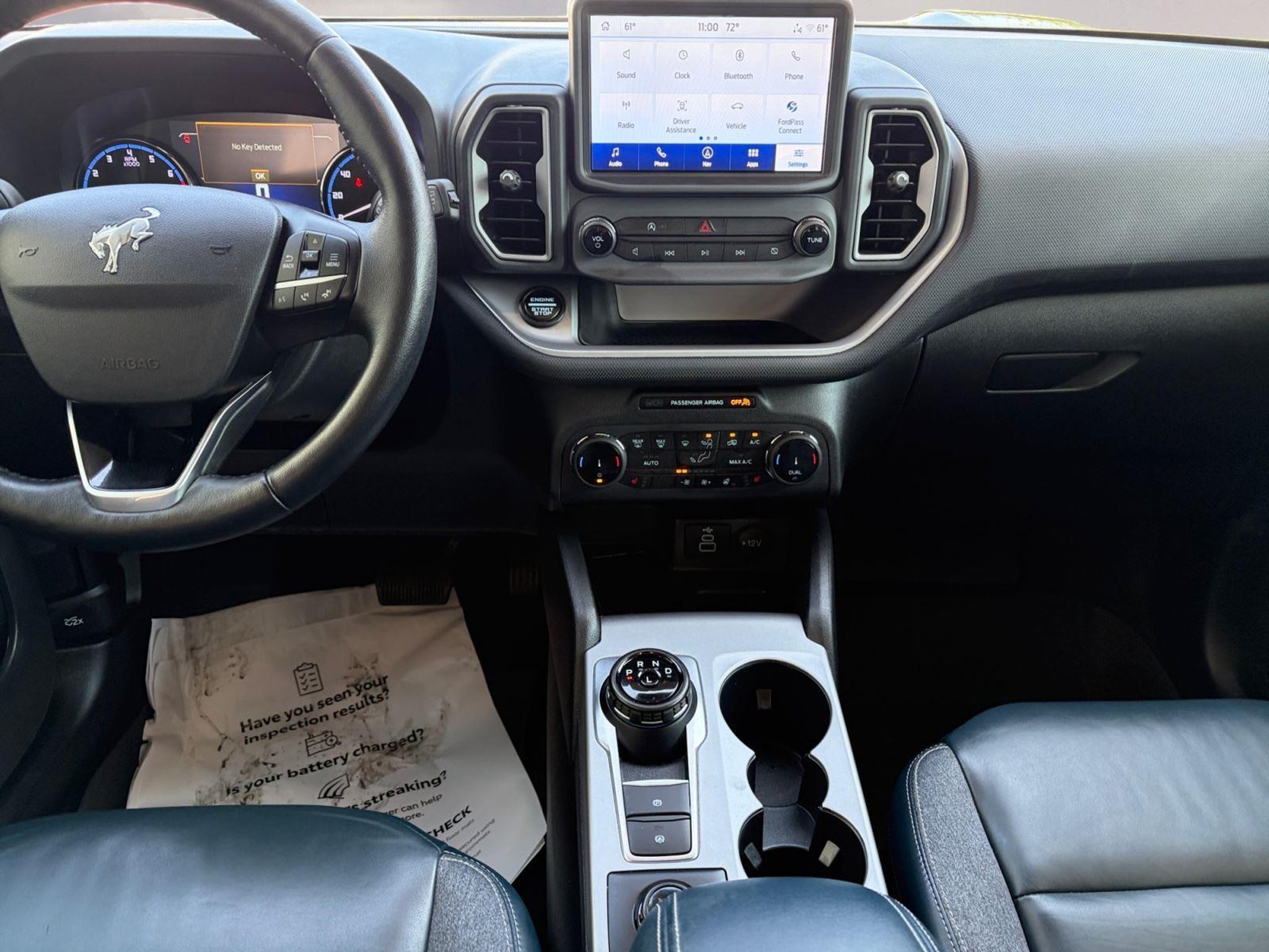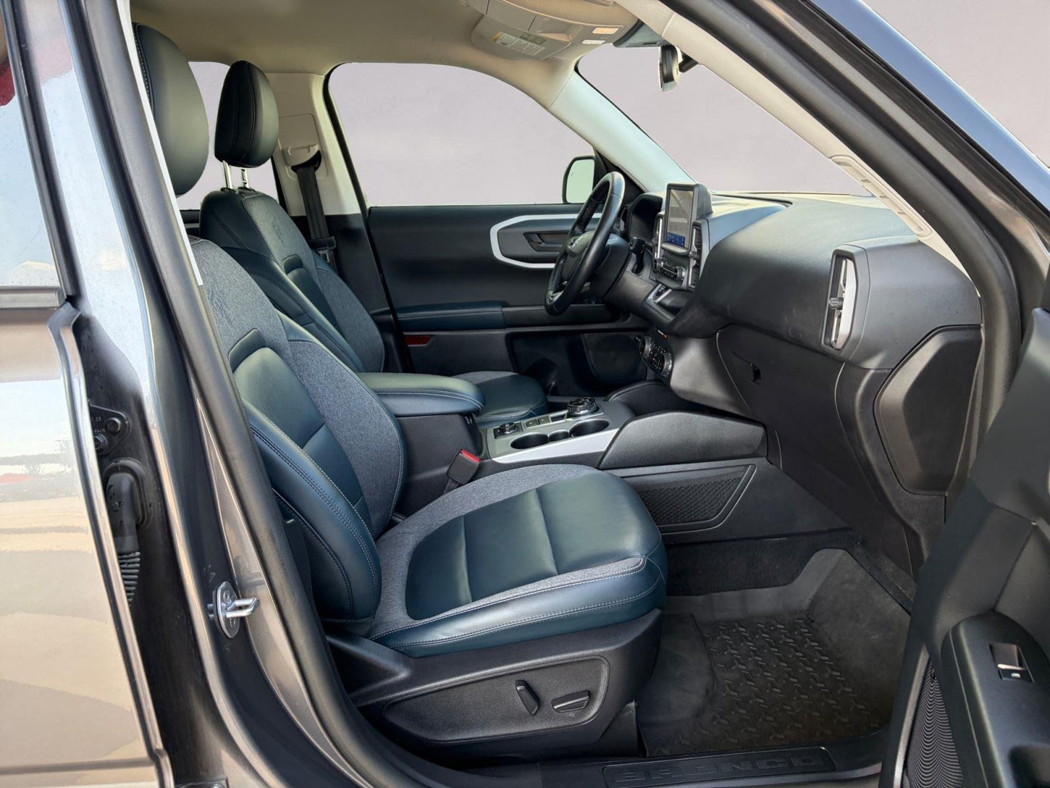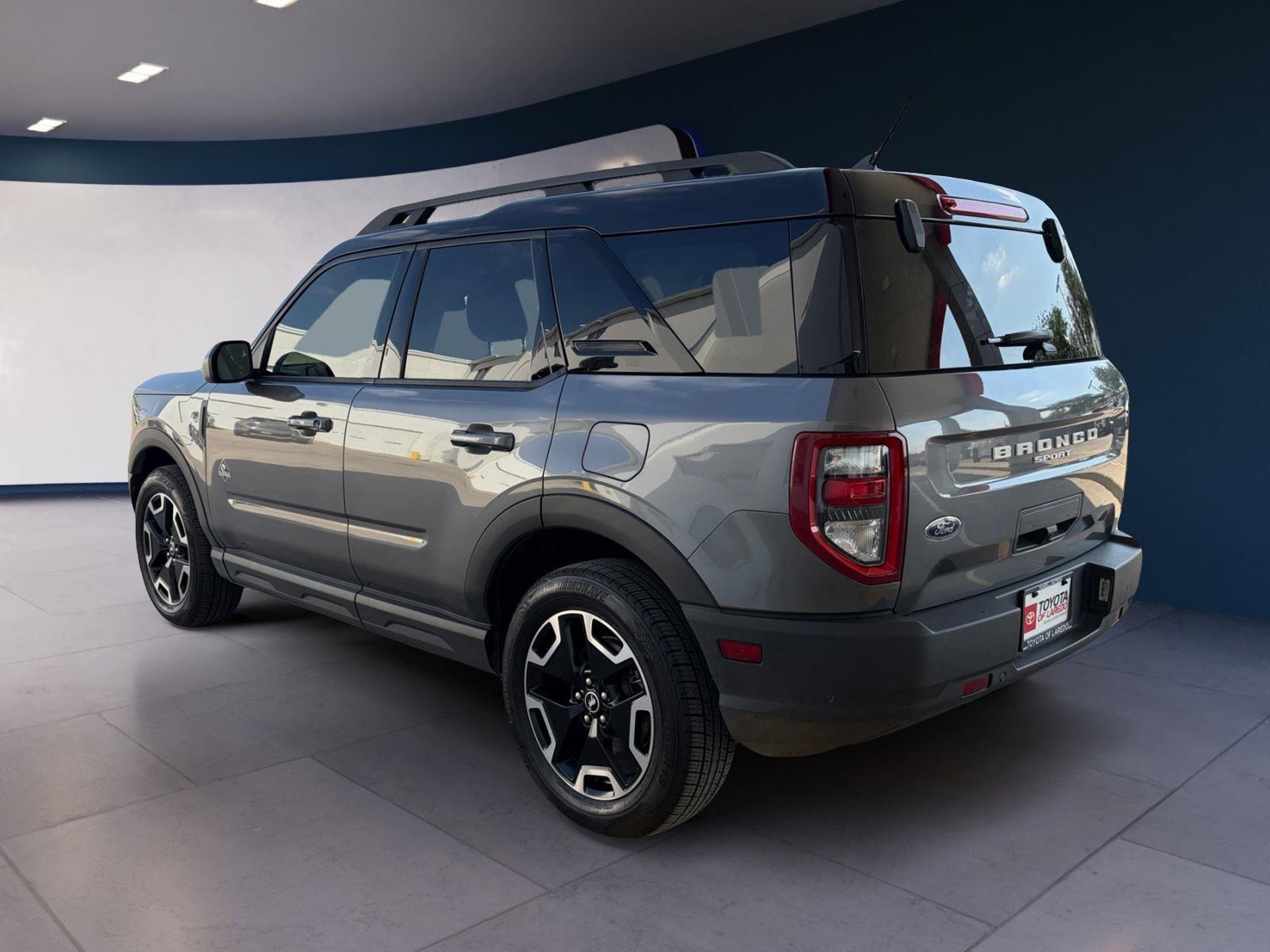 This 2023 Ford Bronco Sport Outer Banks|has a Carbonized Gray exterior and Navy Pier interior color with only 22,016 miles. Stock Number T26653A. You can connect with us by calling .\n \n\n\nNo Accidents! One Owner! \n \n\n OTHER NOTABLE FEATURES AND OPTIONS YOU SHOULD KNOW ABOUT: \n\n Ford Co-Pilot360 Assist ($895 value) Evasive Steering Assist Intelligent Adaptive Cruise Control with Stop and Go Voice-Activated Touchscreen Navigation System Tech Package ($1,285 value) Bang & Olufsen Sound System HD Radio Universal Garage Door Opener (UGDO) Wireless Charging Pad Equipment Group 300A 8-Speed Automatic Transmission Leather Trimmed Heated Sport Contour Bucket Seats 1.5L EcoBoost Engine 3.80 Axle Ratio 4,630 lbs GVWR AM/FM Stereo 225/60R18 All Season Tires Bsw 18 Ebony Black Wheels \n\n\n\n Safety and Security Forward collision mitigation - Forward thinking. You look away for just a second and suddenly the vehicle in front of you has stopped. That's when the forward collision mitigation system comes to life. When it senses an impending impact, it will activate a combination of features to help prevent or reduce the severity of an accident. Forward collision mitigation is always looking ahead. Pedestrian impact prevention - An extra step toward safety. Pedestrians don't always stop, look, and listen, but with Pedestrian Impact Prevention, your vehicle is equipped to better see them and avoid them. This system constantly monitors the road ahead to identify and track pedestrians. It projects that image to an interior display screen, AND should an impact become likely, Pedestrian impact prevention takes steps to avoid a collision. Hands-on cruise control. Set it and forget it. Road trips used to be stressful. Cruise control only managed speed, but not distance or safety. Now, with hands-on cruise control, simply set your desired speed and let sensor technology maintain a safe distance between you and surrounding vehicles. It slows you down; speeds you up and even keeps you in your own lane. Meet your ultimate co-pilot with hands-on cruise control. Technology and Telematics Smart device mirroring - Smartphone, meet smart car. You can control your device through your vehicle's infotainment system. Smart device mirroring brings together safety and convenience by making it easier to find what you're looking for while keeping your eyes on the road. Mobile hotspot - WiFi on the fly. Connect your devices to the Internet through your vehicle's private mobile hotspot and take the internet wherever your journey takes you, without eating up your data allowance. Find the hotspot with mobile hotspot. \n\nENGINE: 1.5L ECOBOOST, CARBONIZED GRAY METALLIC, NAVY PIER, LEATHER TRIMMED HEATED SPORT CONTOUR BUCKET SEATS \n At Toyota of Laredo, we're here to Serve you! Our staff is 100% dedicated to customer satisfaction and we understand that you need clear, transparent information throughout the car buying process. With our live market pricing philosophy, we offer the right cars at the right price, and the transparency to back it up!\n