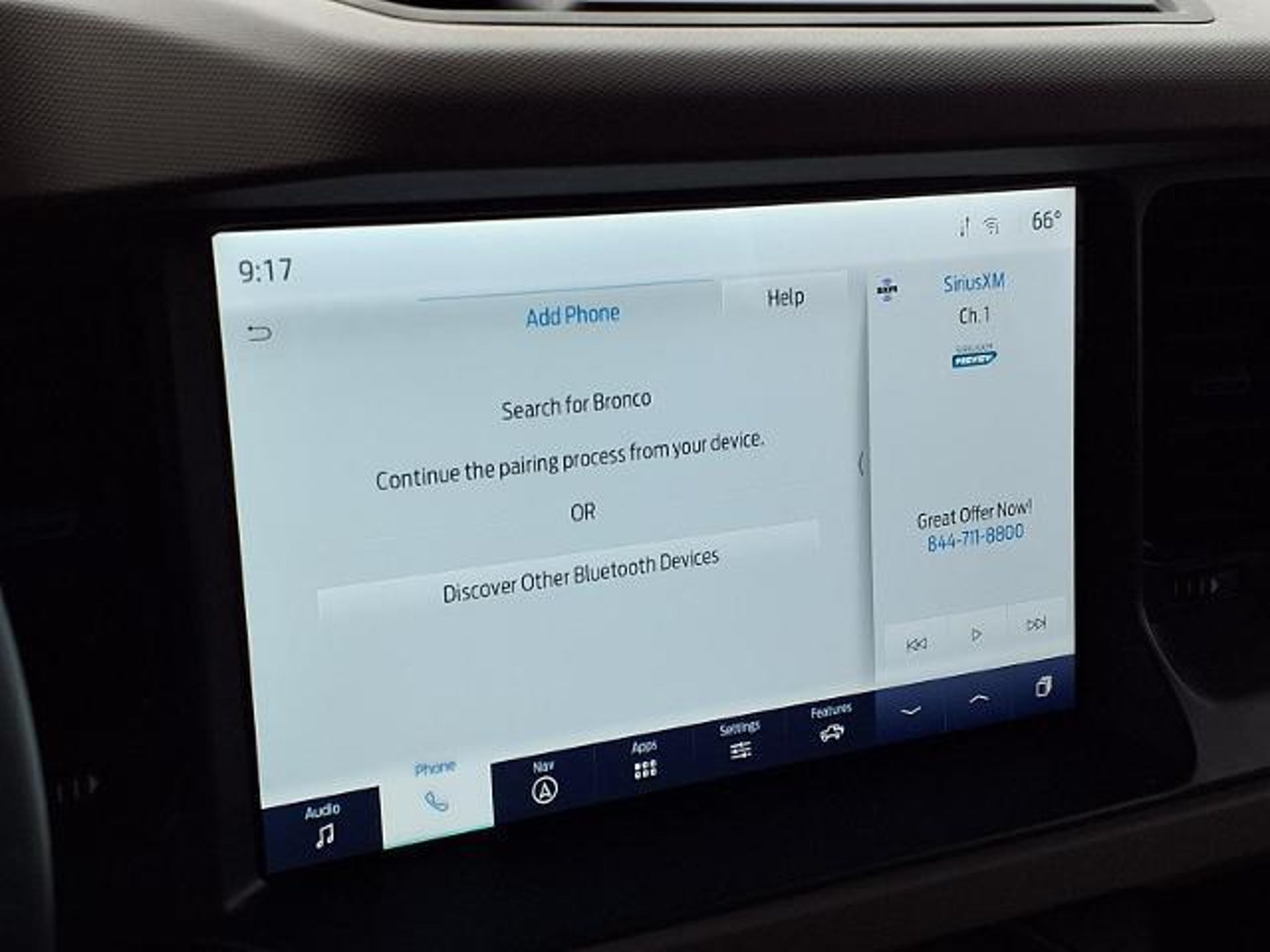 This vehicle is a 2024 Ford Bronco Wildtrak, an SUV 4x4 with low mileage of 5,910 miles. It is equipped with a 2.7 liter 6 cylinder engine and twin turbo, as well as a black exterior and medium sandstone w/ black onyx (tv) interior. The vehicle also features a touch screen display, Bluetooth audio connection, blind spot sensor, hill start assist, part time with on demand four wheel drive, navigation system with voice recognition, navigation with touch screen display, Bluetooth phone connectivity, and leather-trimmed seats. This car is sure to provide an enjoyable driving experience with its many features and capabilities.