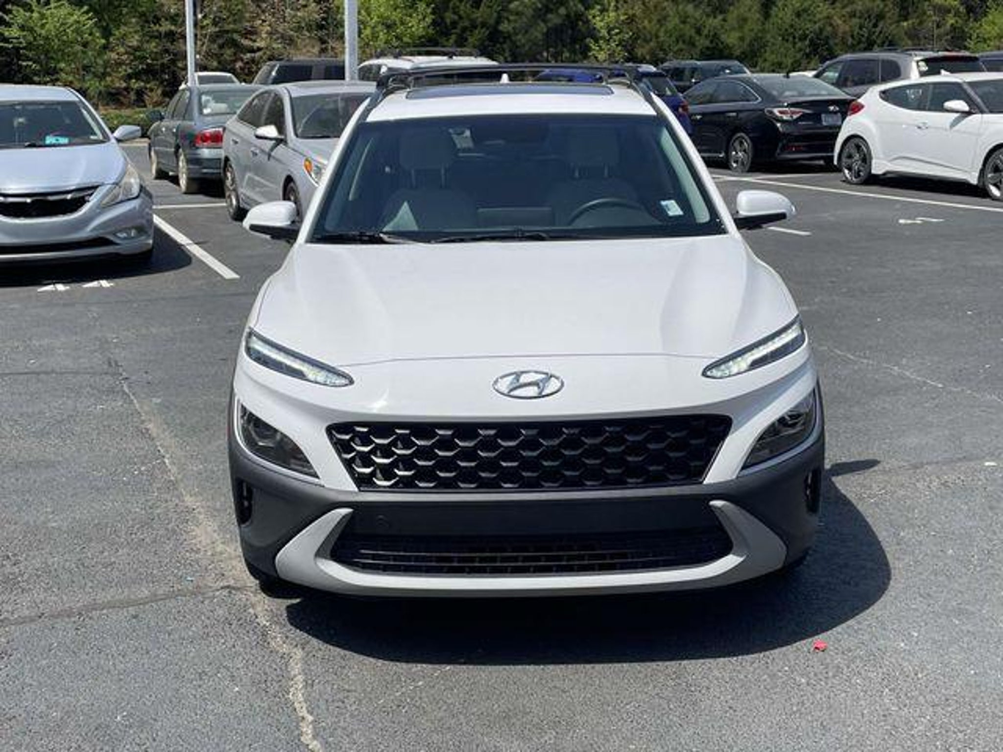 Our One Owner and Clean Carfax 2023 Hyundai Kona SEL AWD with the Convenience Pack in Lunar White is made for miles and miles of adventure! Powered by a 2.0 Liter 4 Cylinder providing 147hp matched to an intelligent CVT that makes it easy to see the world in style. This All Wheel Drive SUV achieves nearly 33mpg on the highway with a premium exterior design. Check out the compelling Convenience Pack that adds a power sunroof to our Kona's LED lighting, roof rails, 17-inch alloy wheels, and heated power mirrors. The versatile layout of our SEL cabin is impressively comfortable with our Convenience Pack, which bundles heated cloth front seats, a leather-wrapped steering wheel, automatic climate control, a 10.25-inch touchscreen, voice recognition, and wireless charging. Our Kona's well-connected infotainment system adds the digital benefits of Android Auto/Apple CarPlay, Bluetooth, and rewarding audio with HD Radio and SiriusXM compatibility. It's also easy to get in and get going with keyless access and pushbutton ignition! For safety's sake, Hyundai provides intelligent driver assistance from forward collision avoidance, blind-spot monitoring, lane-keeping assistance, a rearview camera, a driver attention monitor, a rear-seat reminder, tire pressure monitoring, and more. You can turn heads and tackle busy days in our Kona SEL! Save this Page and Call for Availability. We Know You Will Enjoy Your Fort Mill Hyundai Test Drive Towards Ownership! All advertised prices excludes government fees, taxes, installed accessories and dealer recon. Advertise price includes $625 closing fee. Call Ray today to check availability