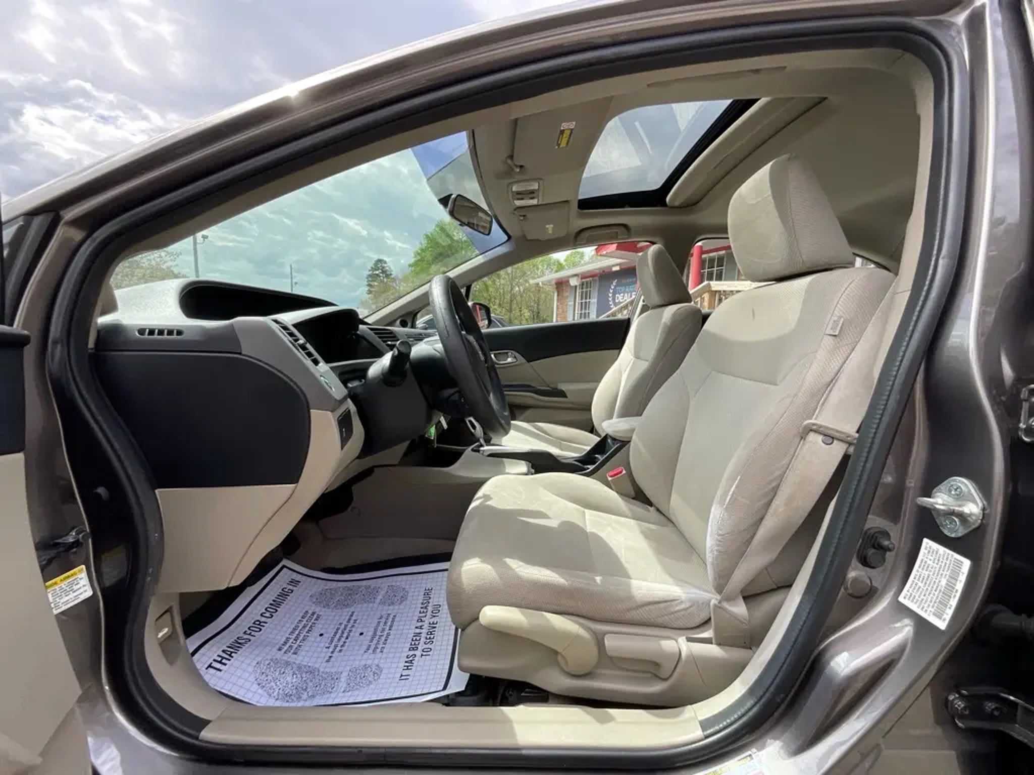Price Shown Includes: $1000 Trade Assist $1000 Other Incentives Please take a look at our remarkable 2012 Honda Civic EX Sedan shown in beautiful Polished Metal Metallic. Motivated by a 1.8 Liter 4 Cylinder that provides 140hp combined with a 5 Speed Automatic transmission for passing ease. This Front Wheel Drive sedan offers nearly 39mpg on the highway, showing off a playful, mature aerodynamic design with sculpted bumpers. This EX exudes a look that will catch the eye of on-lookers and provides nimble, precise handling for drivability that is top in its class. Don't forget the massive trunk for all of your gear! The spacious interior of our EX features a CD/MP3 playback stereo and USB port. You'll also appreciate the convenience of Bluetoothr technology, power accessories, a tilt and telescopic steering wheel with audio and cruise controls, and the breeze coming in through the sunroof! Honda is a leader in safety innovation, and once again, the engineers behind this car have superior safety in mind with its ACE body structure. Tried and true, this Civic EX sedan is built for fuel economy, safety, and entertaining driving dynamics. Save this Page and Call for Availability. We Know You Will Enjoy Your Test Drive Toward Ownership! Peach State Motors 5799 Highway 92 Acworth, Ga 30102 678-273-3391 http://www.peachstatemotors.com https://goo.gl/maps/6CoseboKSXwriEKA8