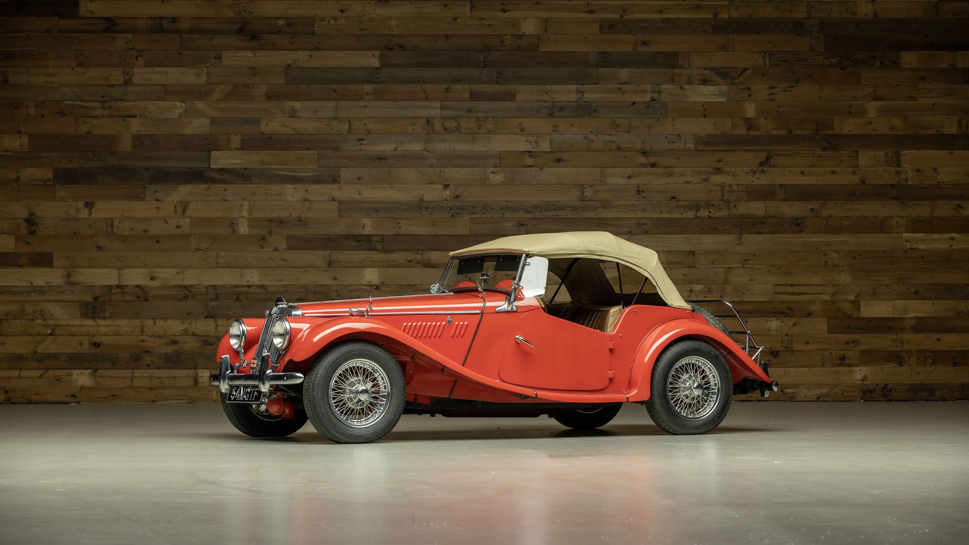 Introduced for the 1954 model year, the MG TF represented one of the final evolutions of MGs beloved T-Series roadsters, developed as a transitional model before the all-new MGA. While the preceding MG TD had enjoyed strong postwar sales, particularly in the United States, its upright, prewar-inspired styling was beginning to feel dated. Rather than undertake a full redesign, MG refined the existing platform, creating the TF as a more modernized interpretation of the classic British sports car. Key changes focused on appearance and performance. The TF featured a lower, sleeker profile with a slanted radiator grille, faired-in headlamps, and a revised bonnet line that improved aerodynamics and visual appeal. Under the hood, the proven engine was retained initially, later enlarged to 1,466 cc in TF 1500 form, offering improved performance. The MG TF was developed to extend the life of the T-Series while satisfying evolving market tastes, bridging tradition and modernity at a pivotal moment in MGs history. One of the longer residents of The Dane Miller Estate Collection, this lovely little 1954 MG TF was welcomed into the collection 32 years ago in 1994. Documented on the accompanying bill of sale and title, the collection acquired this MG from the Classic Car Centre of Warsaw, Indiana, who had owned it since 1991. Finished in the smooth and eye-catching color of red, its flowing body is complemented by classic knock-off wire wheels and subtle chrome throughout. Other exterior features include a rear-mounted full spare, rear luggage rack, dual sideview mirrors, wind wings, and a front grille bar with various motoring badges affixed. The cockpit interior features newer faux brown leather upholstery with a matching dashboard, a banjo style steering wheel, as well as tan folding soft top enclosed by a matching boot cover. A set of snap-in windows is also included for when weather is not favorable, and you still want to enjoy this MG. Power is provided by MGs lively 1.25-litre inline four-cylinder engine, paired with a traditional four-speed manual gearbox that delivers an engaging, mechanical driving experience. Light on its feet and full of character, the MG TF offers just the right amount of performance to make every back road feel special without sacrificing approachability. Ideal for weekend driving, casual touring, and local cruise-ins, the TF remains a charming reminder of an era when driving pleasure was defined by simplicity, sound, and connection to the road. * Recipient of an older complete restoration * Acquired by the Collection 32 years ago in 1994 * A lovely little British automobile finished in charming colors From the Kruse Auctions