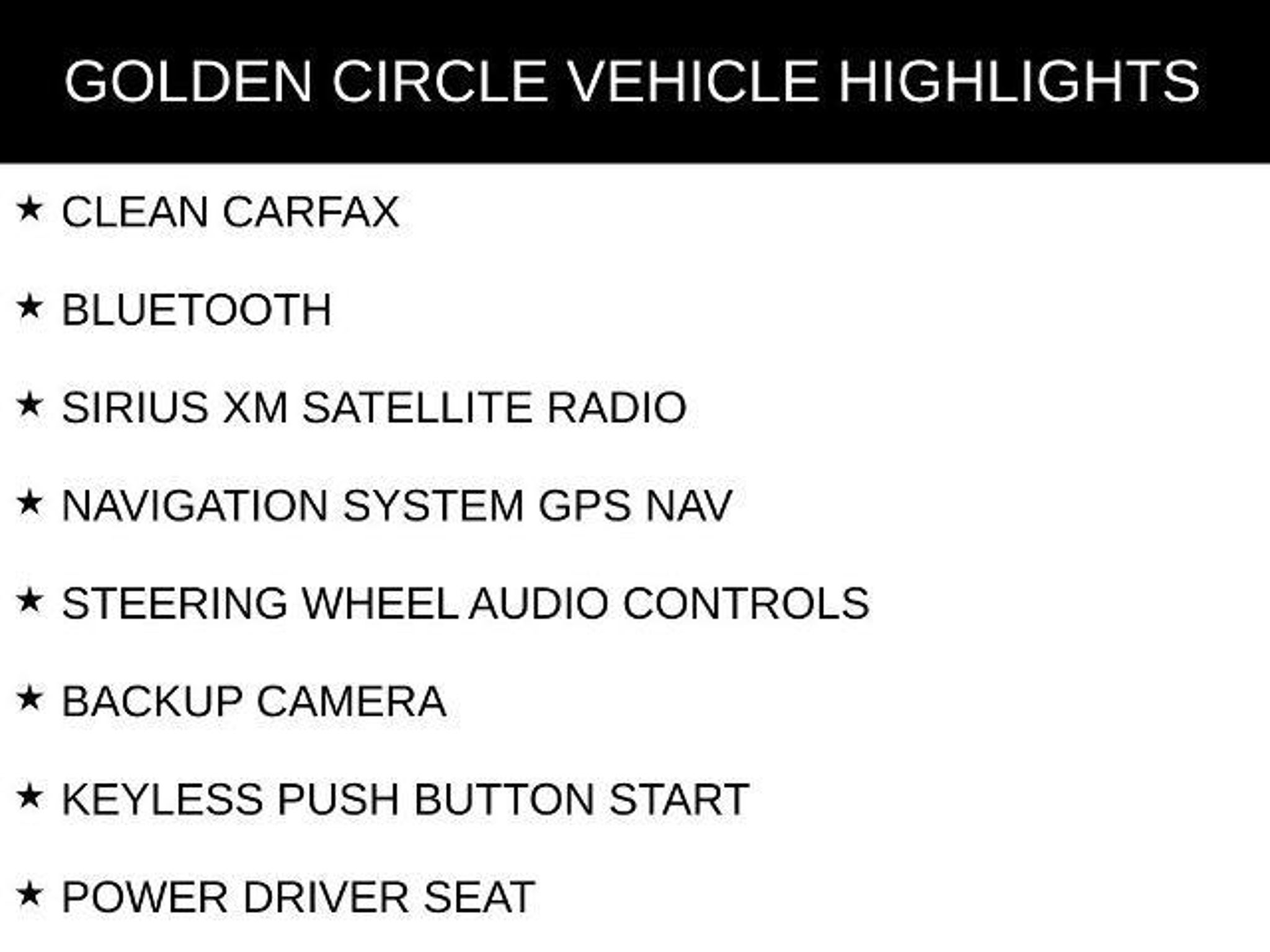 CLEAN CARFAX, BLUETOOTH, SIRIUS XM SATELLITE RADIO, NAVIGATION SYSTEM GPS NAV, STEERING WHEEL AUDIO CONTROLS, BACKUP CAMERA, KEYLESS PUSH BUTTON START, POWER DRIVER SEAT, POWER PASSENGER SEAT, HEATED FRONT LEATHER SEATS, SUNROOF/MOONROOF, MEMORY PACKAGE / MEMORY SEAT, ALL WEATHER FLOOR MATS, 6 SPEAKERS, ABS BRAKES, AIR CONDITIONING, AUTOMATIC TEMPERATURE CONTROL, DELAY-OFF HEADLIGHTS, DRIVER VANITY MIRROR, DUAL FRONT IMPACT AIRBAGS, DUAL FRONT SIDE IMPACT AIRBAGS, ELECTRONIC STABILITY CONTROL, EMERGENCY COMMUNICATION SYSTEM, FRONT DUAL ZONE A/C, HEATED DOOR MIRRORS, ILLUMINATED ENTRY, LEATHER SEATING SURFACES, LOW TIRE PRESSURE WARNING, OCCUPANT SENSING AIRBAG, OUTSIDE TEMPERATURE DISPLAY, OVERHEAD CONSOLE, PANIC ALARM, PASSENGER VANITY MIRROR, POWER DOOR MIRRORS, POWER MOONROOF, POWER WINDOWS, RAIN SENSING WIPERS, REAR FOG LIGHTS, REAR WINDOW DEFROSTER, REMOTE KEYLESS ENTRY, SPEED CONTROL, SPEED-SENSITIVE WIPERS, TELESCOPING STEERING WHEEL, TILT STEERING WHEEL, TRACTION CONTROL, TURN SIGNAL INDICATOR MIRRORS, VARIABLY INTERMITTENT WIPERS, WHEELS: 17 5-ARM DESIGN.
