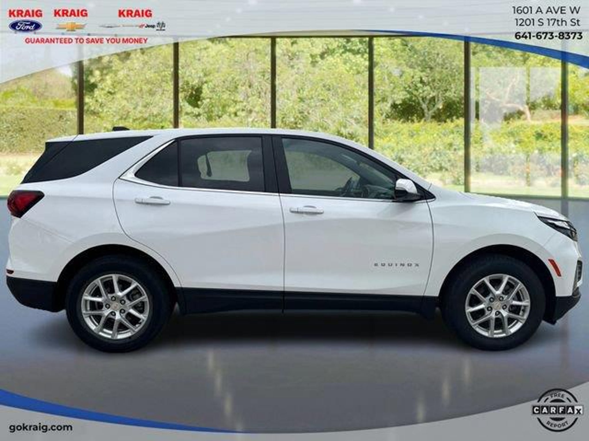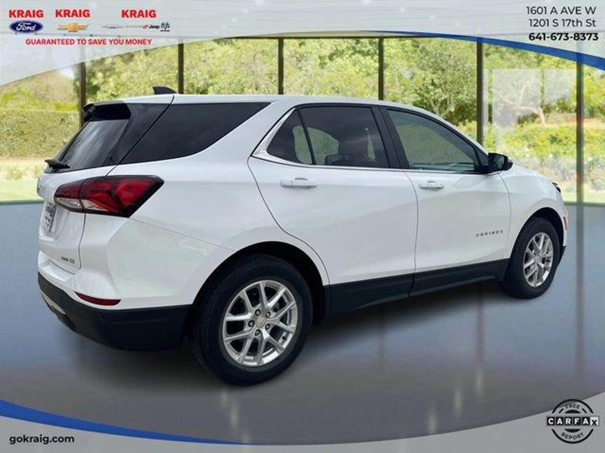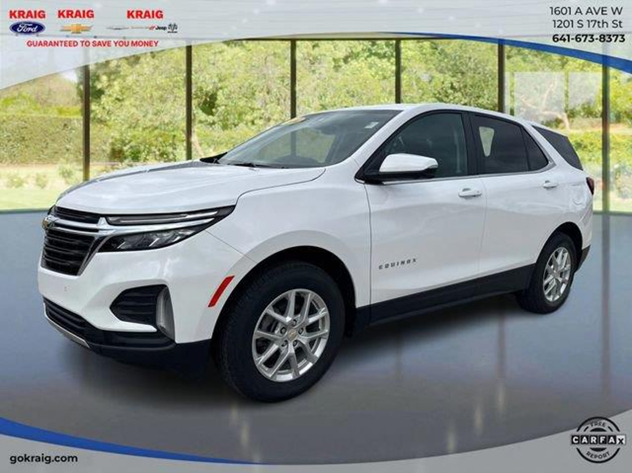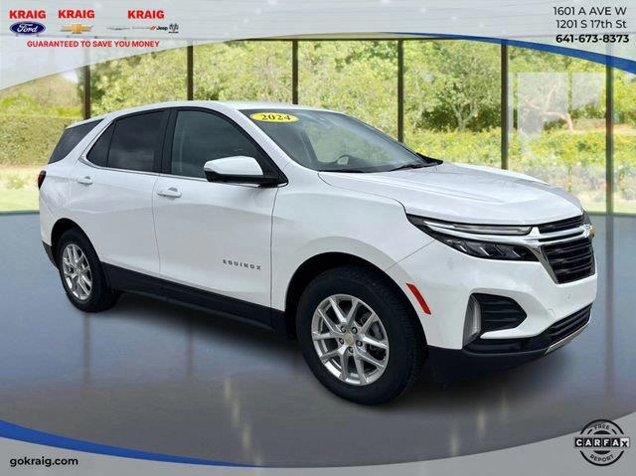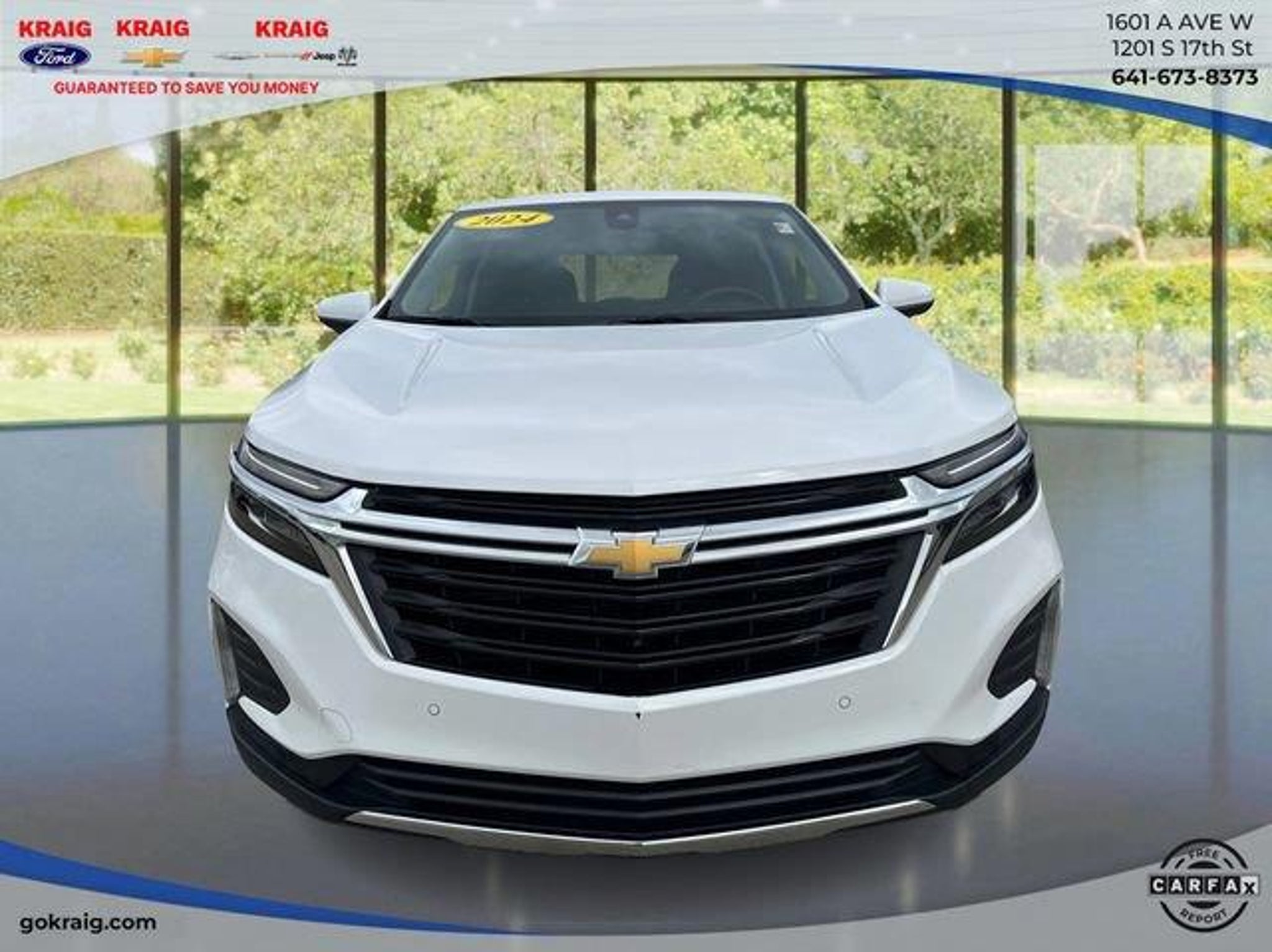 CARFAX One-Owner. 24/30 City/Highway MPGSummit White 2024 Chevrolet Equinox LT AWD 6-Speed Automatic Electronic with Overdrive 1.5L DOHCAt Kraig Ford CDJR our vast selection of Pre-Owned vehicles along with competitive pricing and financing options equals great deals and savings for you!Kraig Ford CDJR is a family owned dealership and that is portrayed in the small town atmosphere of the dealership. The owner of the dealership, Craig Ford, is a veteran of the U.S. Army and proudly supports our troops and veterans.