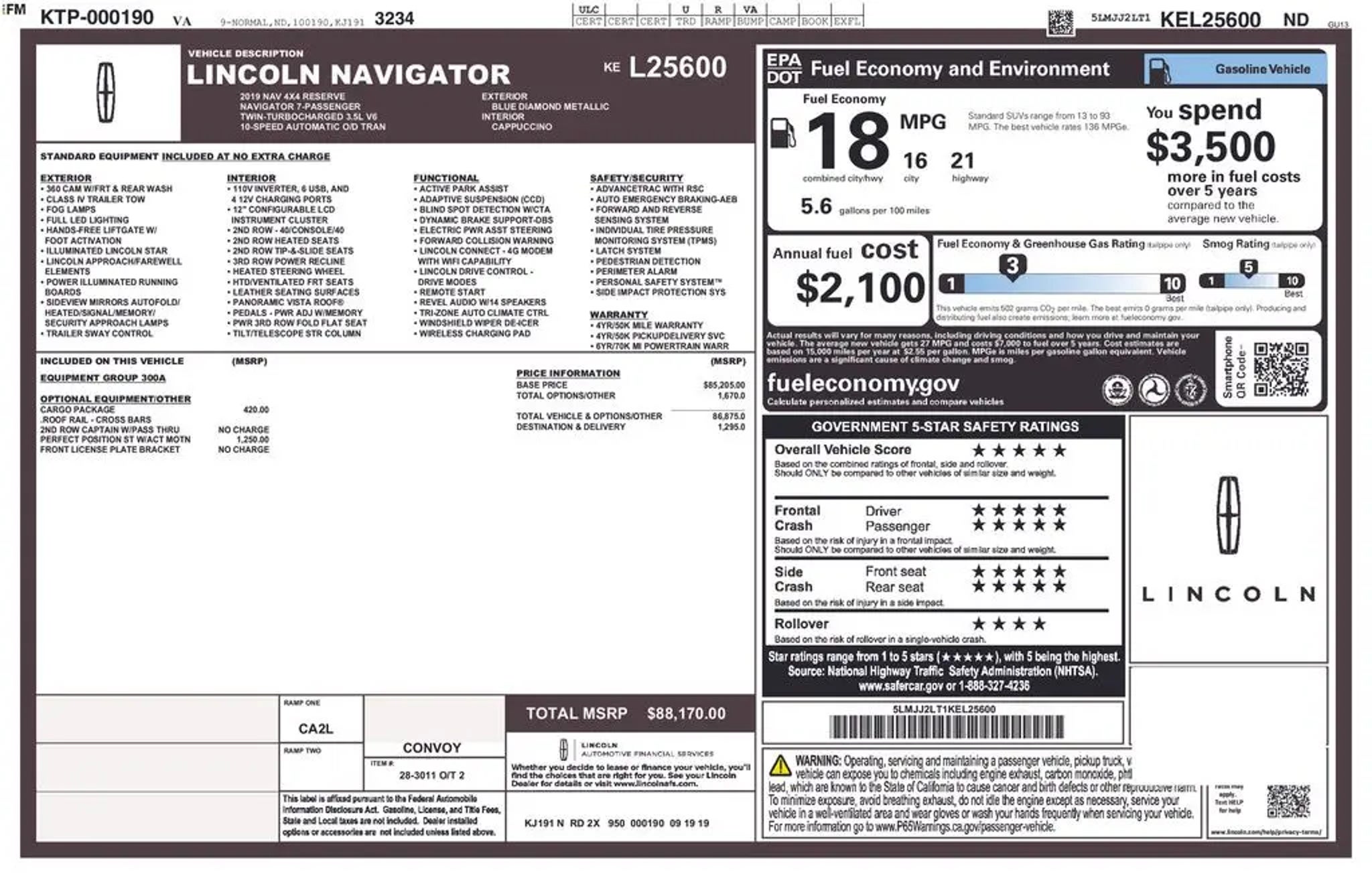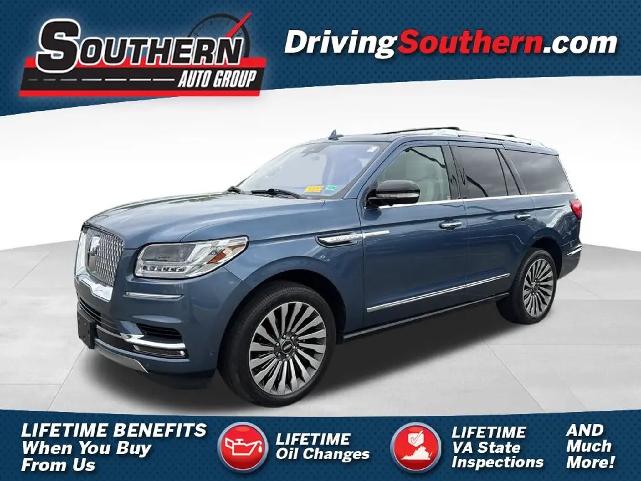 Recent Arrival! CARFAX One-Owner. Clean CARFAX. LOCATED AT SOUTHERN FORD, 12896 JEFFERSON AVE, NEWPORT NEWS VA, 23608. This is more than just luxury "” this is the deal of a lifetime. Presenting this stunning 1-Owner 2019 Lincoln Navigator Reserve 4X4, a full-size luxury SUV that delivers first-class comfort, commanding performance, and an ownership history you simply won't find every day. Purchased right here new, meticulously serviced here with over 20 service records, and then traded back in right here, this Navigator is the definition of a well-known, well-maintained vehicle. You know exactly where it's been "” and how well it's been cared for. 💎 Reserve Luxury "“ Top-Tier Comfort Step inside and experience true refinement with premium leather seating, elegant wood accents, and a cabin designed to rival high-end luxury brands. With 7-passenger seating, this SUV offers exceptional comfort for the entire family. 💪 Twin-Turbo Performance & 4X4 Confidence Powered by a strong twin-turbocharged engine, the Navigator delivers smooth, effortless power while the 4X4 system provides confidence in all weather and road conditions. It's luxury that doesn't compromise capability. 🌞 Premium Features Throughout Heated & ventilated front seats Power-fold 3rd row Large touchscreen with navigation Premium Revel® audio system Panoramic-style openness and refined interior design Power liftgate and advanced driver-assist technology 🛋 Spacious & Versatile With three rows of seating and exceptional cargo space, the Navigator is built for road trips, daily driving, and everything in between "” all while keeping passengers comfortable and relaxed. Why This Navigator is the Deal of a Lifetime "¢ 1-Owner, locally owned and serviced "¢ Over 20 service records "” exceptional maintenance history "¢ Purchased, serviced, and traded here "¢ Reserve luxury trim "¢ 4X4 capability "¢ Full-size SUV at an incredible value Finding a 2019 Navigator Reserve 4X4 with this kind of history, care, and value is incredibly rare. This is luxury without the new price "” and confidence you can't put a price on. If you've been waiting for the right full-size luxury SUV, this is it. PROUDLY SERVING HAMPTON ROADS, PENINSULA, SOUTHSIDE, RICHMOND, NEWPORT NEWS, HAMPTON, POQUOSON, YORKTOWN, SUFFOLK, NORFOLK, WILLIAMSBURG, CHESAPEAKE, VIRGINIA BEACH, EASTERN SHORE, GLOUCESTER, WEST POINT. 🚙, 4WD, Cappuccino w/Premium Lthr Htd/Ventilated Low-Back Bucket Seats. Blue Diamond Metallic 2019 Lincoln Navigator Reserve 10-Speed Automatic V6