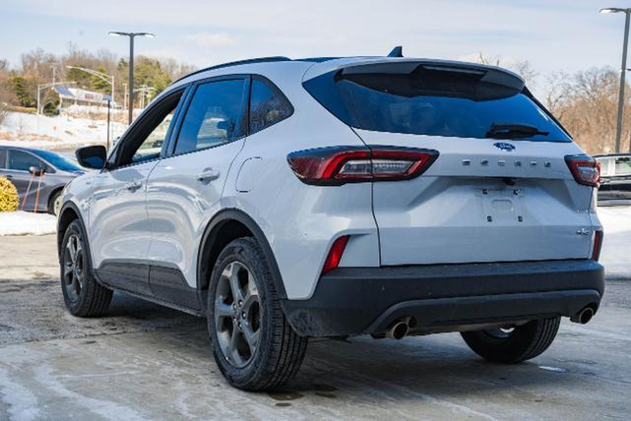 Prices on vehicles include freight and destination charges (applies to new vehicles only), as well as a $999 Dealer Processing Fee BLIS / BLIND SPOT MONITORING / BLIND SIDE ALERT, REARVIEW CAMERA / BACK UP CAMERA / REVERSE CAMERA, REAR VIEW CAMERA WDYNAMIC GUIDELINES, ANDROID AUTO & APPLE CARPLAY, POWER WINDOWS & LOCKS, ALL WHEEL DRIVE / AWD, STEERING WHEEL AUDIO CONTROLS, CRUISE CONTROL, SYNC 3, REMOTE START, REAR CROSS TRAFFIC ALERT, PUSH-BUTTON START, BLUETOOTH AUDIO STREAMING, BLUETOOTH & BLUETOOTH STREAMING, BLUETOOTH HANDS-FREE PHONE SYSTEM, ONE OWNER, ECO BOOST ENGINE, DUAL ZONE A/C CONTROLS, BLUETOOTH, AUTO HIGH BEAMS, 3.81 Axle Ratio, 4-Wheel Disc Brakes, 6 Speakers, ABS brakes, Air Conditioning, Alloy wheels, Auto High-beam Headlights, Automatic temperature control, Brake assist, Bumpers: body-color, Compass, Delay-off headlights, Electronic Stability Control, Equipment Group 300A, Four wheel independent suspension, Front Bucket Seats, Front Center Armrest, Front dual zone A/C, Front License Plate Bracket, Front reading lights, Fully automatic headlights, Illuminated entry, Internet access capable: FordPass Connect 4G, Low tire pressure warning, Panic alarm, Passenger door bin, Power door mirrors, Power driver seat, Power steering, Power windows, Radio data system, Rear reading lights, Rear seat center armrest, Rear window defroster, Rear window wiper, Remote keyless entry, Speed-sensing steering, Speed-Sensitive Wipers, Split folding rear seat, Spoiler, Steering wheel mounted audio controls, SYNC 4, Traction control, Trip computer, Variably intermittent wipers, Vinyl/Cloth Front Sport Contour Bucket Seats, Wheels: 18 Rock Metallic Painted Aluminum. 2025 Ford Escape ST-Line AWD Space Silver Metallic 1.5L EcoBoost