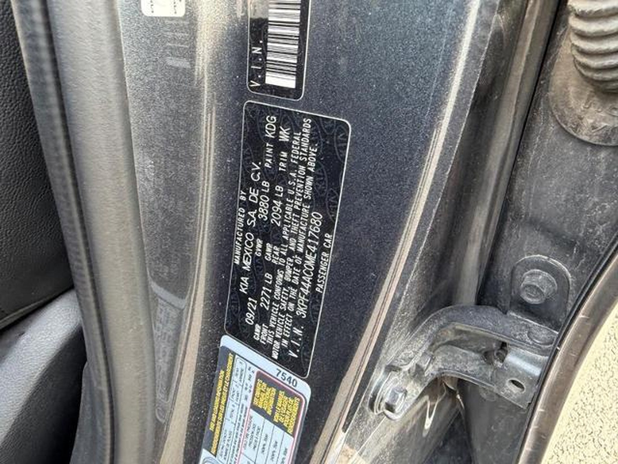VIN 3KPF44AC0ME417680