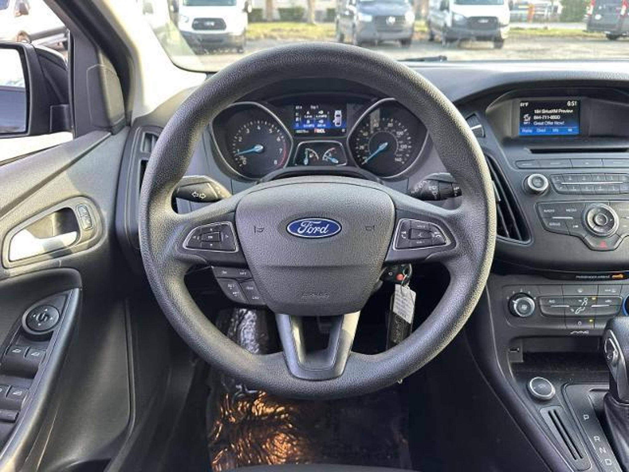 FUEL EFFICIENT 38 MPG Hwy/26 MPG City! SE trim. Brake Actuated Limited Slip Differential, Smart Device Integration, Onboard Communications System, CD Player, iPod/MP3 Input, Flex Fuel, Back-Up Camera, Alloy Wheels, Satellite Radio KEY FEATURES INCLUDE Back-Up Camera, Flex Fuel, Satellite Radio, iPod/MP3 Input, CD Player, Onboard Communications System, Aluminum Wheels, Smart Device Integration, Brake Actuated Limited Slip Differential Rear Spoiler, MP3 Player, Keyless Entry, Steering Wheel Controls. Ford SE with Shadow Black exterior and Charcoal Black interior features a 4 Cylinder Engine with 160 HP at 6500 RPM*. OPTION PACKAGES TRANSMISSION: 6-SPEED POWERSHIFT AUTOMATIC (STD). VEHICLE REVIEWS Edmunds.com explains Much like its upscale interior, the driving characteristics of the 2017 Ford Focus help it stand out in its class. the ride quality is smooth, quiet and docile on the highway or over broken city streets, but it still manages to handle corners well and feel especially sporty for the class.. PRICED TO MOVE This Focus is priced $1,300 below J.D. Power Retail. Pricing analysis performed on 4/4/2026. Horsepower calculations based on trim engine configuration. Fuel economy calculations based on original manufacturer data for trim engine configuration. Please confirm the accuracy of the included equipment by calling us prior to purchase.