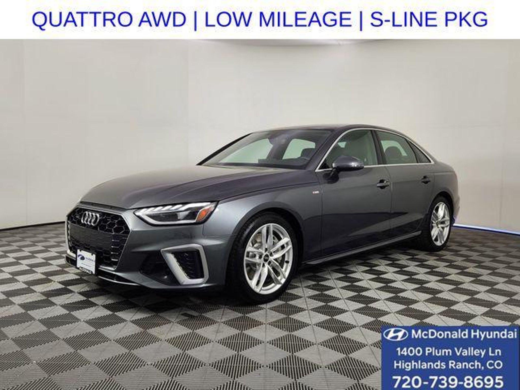 Details > 2023 Audi A4 AWD Quattro S Line Premium Plus 45 Tfsi 4DR Sedan For Sale in Highlands Ranch, CO Private Party Sellers Click here to place your ad now! You auta tell them you saw the ad in AutaBuy when you call or email. 1/23 2/23 3/23 4/23 5/23 6/23 7/23 8/23 9/23 10/23 11/23 12/23 13/23 14/23 15/23 16/23 17/23 18/23 19/23 20/23 21/23 22/23 23/23 View 23 Photos View All Add to My Garage Parked in Your Garage! Mcdonald Hyundai Contact Seller: I would like to: Make Offer Check Availability Ask A Question Request More Photos Check Financing Options Send a copy of this message to me Add this listing to my garage Send to Mobile Mileage 32,292 Exterior Color Daytona Gray Pearl Effect Interior Color Unknown Doors 4 Engine 2.0L I4 Transmission 7 Speed Auto Stock # HPPN001238 Ad ID 108843530 VIN WAUEAAF47PN001238 Estimated Monthly Payment $527 mo Apply Now J.J. Best Banc & Co. 2023 Audi A4 AWD Quattro S Line Premium Plus 45 Tfsi 4DR Sedan Description: Mcdonald Auto Group Hyundai · Mileage: 32,292 · Color: Daytona Gray Pearl Effect Price: $30,687. Price: $30,260. Mileage 32,292 Exterior Color Daytona Gray Pearl Effect Interior Color Unknown Doors 4 Engine 2.0L I4 Transmission 7 Speed Auto Stock # HPPN001238 Ad ID 108843530 VIN WAUEAAF47PN001238 Estimated Monthly Payment $527 mo Apply Now J.J. Best Banc & Co. Add to My Garage Parked in Your Garage! Message Seller Mcdonald Hyundai Contact Seller: I would like to: Make Offer Check Availability Ask A Question Request More Photos Check Financing Options Send a copy of this message to me Add this listing to my garage Offered for sale by Mcdonald Hyundai HIGHLANDS RANCH, CO Price: $30,687. Price: $30,260. Offered for sale by Mcdonald Hyundai HIGHLANDS RANCH, CO [entire inventory] Ask Auta Intelligence The first collector-car AI built directly into a classic car marketplace How many of these were produced? What colors did these come in? What factory options were available on this model? Where is this located? Tell me about this model How many A4s were produced in Gray? Can you show me more imports for a similar price? What trim levels were available for this model? What kind of mileage do these get? What does this VIN number tell me? What transmission options did these offer? When was this model first introduced? How far is this from me? What engine options did these come with? How easy are parts to find for this model? Do you have a similar car to sell? List It Now! Questions about this car? Ask Auta Intelligence for production numbers, available options, etc. · Subscribe to AutaBuy! · Send a Gift Subscription Notice to a Friend