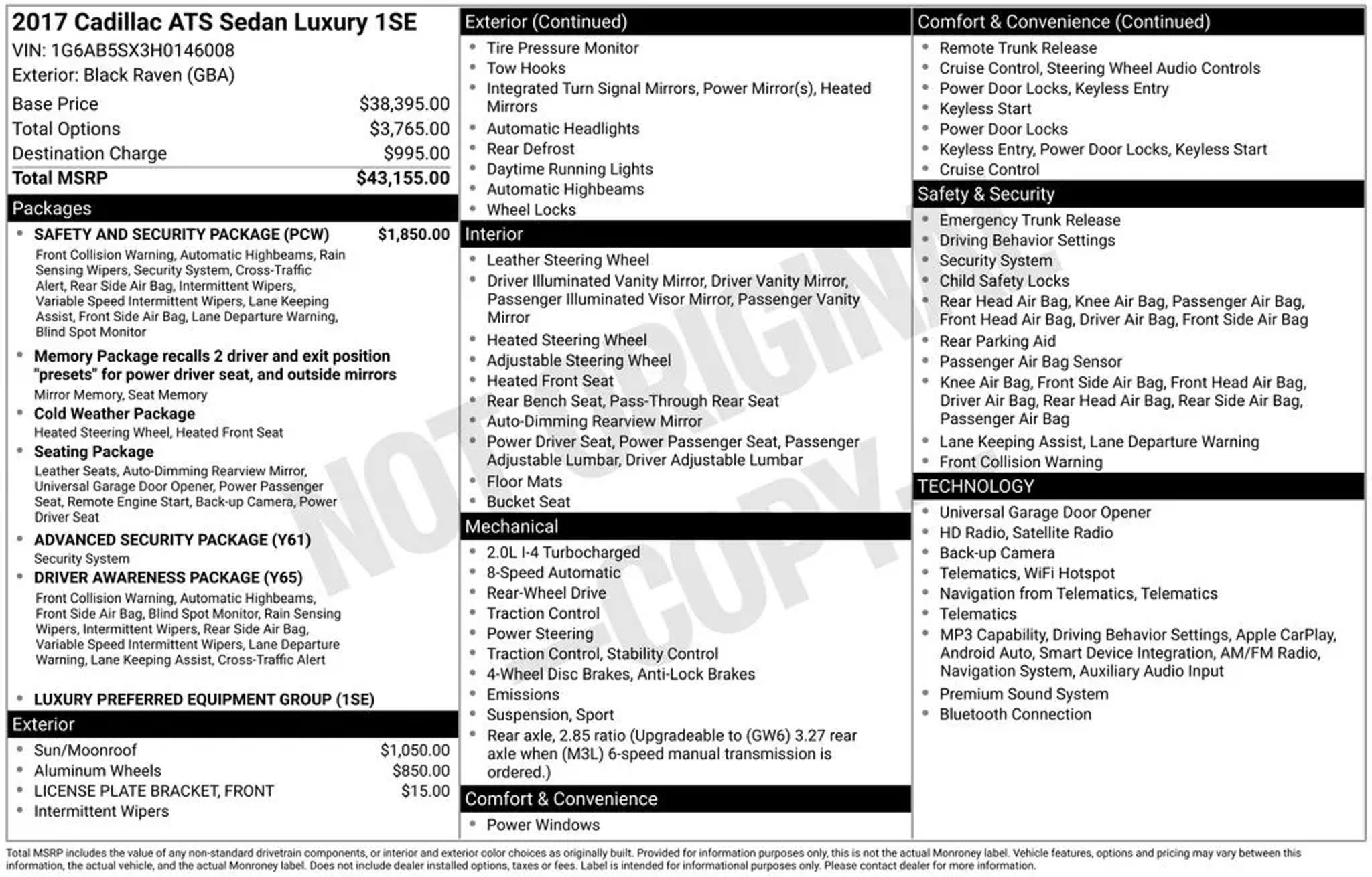 CLEAN CARFAX, BLUETOOTH, SIRIUS XM SATELLITE RADIO, APPLE CARPLAY, GOOGLE ANDROID AUTO, NAVIGATION SYSTEM GPS NAV, BOSE HIGH END SOUND PACKAGE / BOSE SPEAKERS, STEERING WHEEL AUDIO CONTROLS, TOUCH SCREEN CONTROLS, BACKUP CAMERA, HOMELINK UNIVERSAL GARAGE DOOR OPENER, POWER DRIVER SEAT, HEATED FRONT LEATHER SEATS, SUNROOF/MOONROOF, MEMORY PACKAGE / MEMORY SEAT, REMOTE START, HEATED STEERING WHEEL, 2.0L TURBO LUXURY, ADVANCED SECURITY PACKAGE, CADILLAC CUE & NAVIGATION, COLS WEATHER PACKAEG, DRIVER AWARENESS PACAKGE, LUXURY EQUIPMENT PACKAGE 1SE, SAFETY & SECURITY PACKAGE, 18 FORGED POLISHED ALLOY WHEELS, 2.85 REAR AXLE RATIO, ABS BRAKES, ACTIVE AERO GRILLE, AIR CONDITIONING, AUTO-DIMMING DOOR MIRRORS, AUTOMATIC TEMPERATURE CONTROL, BLUETOOTH FOR PHONE/AUDIO, BOSE PREMIUM SURROUND SOUND 10-SPEAKER SYSTEM, BRAKE ASSIST, COMPASS, DELAY-OFF HEADLIGHTS, DRIVER & FRONT PASSENGER DUAL-STAGE AIR BAGS, DRIVER VANITY MIRROR, DUAL FRONT IMPACT AIRBAGS, DUAL FRONT SIDE IMPACT AIRBAGS, FRONT DUAL ZONE A/C, HEATED DOOR MIRRORS, HEATED STEERING WHEEL RIM, LANE KEEP ASSIST W/LANE DEPARTURE WARNING, LOW TIRE PRESSURE WARNING, OCCUPANT SENSING AIRBAG, OUTSIDE TEMPERATURE DISPLAY, OVERHEAD CONSOLE, PANIC ALARM, PASSENGER VANITY MIRROR, POWER DOOR MIRRORS, POWER WINDOWS, RADIO DATA SYSTEM, RAINSENSE WIPERS, REAR CROSS-TRAFFIC ALERT, REAR READING LIGHTS, REAR THORAX AIR BAGS, REAR WINDOW DEFROSTER, REMOTE KEYLESS ENTRY, SPEED CONTROL, SPEED-SENSING STEERING, STEERING COLUMN LOCK CONTROL, TELESCOPING STEERING WHEEL, TILT STEERING WHEEL, TURN SIGNAL INDICATOR MIRRORS, VARIABLY INTERMITTENT WIPERS.
