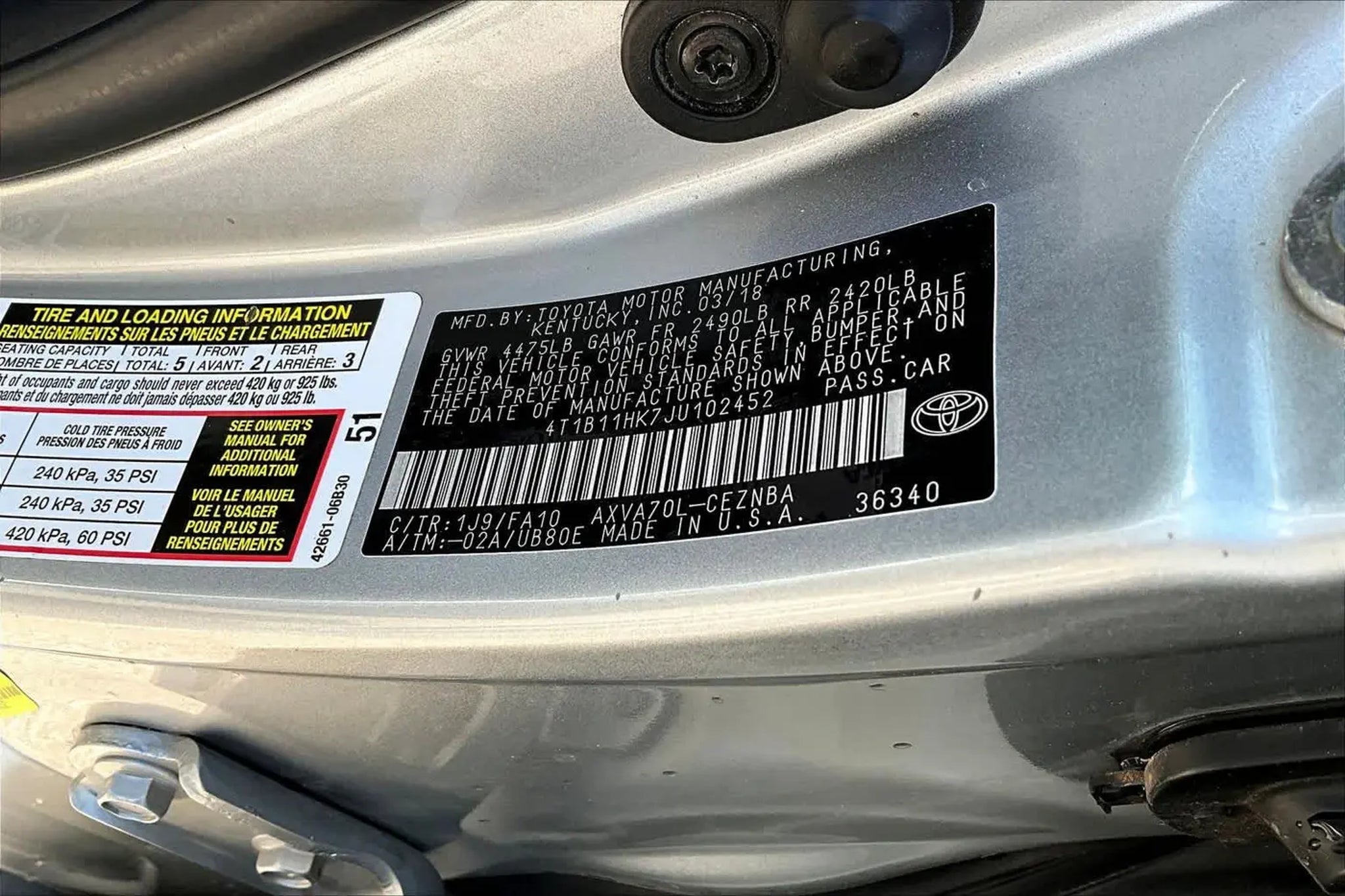 Ford Blue Certified, Clean. Celestial Silver Metallic exterior and Ash interior. EPA 39 MPG Hwy/28 MPG City! Smart Device Integration, Bluetooth®, iPod/MP3 Input, Aluminum Wheels, PROTECTION PACKAGE (Q2), Back-Up Camera, Serviced here KEY FEATURES INCLUDE Serviced here, Back-Up Camera, iPod/MP3 Input, Bluetooth®, Aluminum Wheels, Smart Device Integration Toyota LE with Celestial Silver Metallic exterior and Ash interior features a 4 Cylinder Engine with 203 HP at 6600 RPM*. OPTION PACKAGES PROTECTION PACKAGE (Q2) Rear Bumper Applique (Clear), Door Sill Protectors. EXPERTS RAVE Edmunds.coms review says The big and comfortable seats, well-executed ride and powerful climate control mean the Camry will suit drivers of most sizes well even on long trips.. SHOP WITH CONFIDENCE Every Blue Certified used vehicle must pass a 139-point inspection, Service available at any Ford Dealer in the 50 states, and a manufacturer-backed 90-Day/4,000-Mile (whichever comes first) Comprehensive Limited Warranty, and Complimentary 24/7 Roadside Assistance, 11,000 FordPass Rewards Points to use towardscheduled maintenance visits or other rewards, CARFAX Vehicle History Report included, Complimentary SiriusXM 3-month trial WHO WE ARE At Group 1 Ford El Paso, our goal is to exceed your expectations at all times. The moment you walk into our showroom, which features the latest F-150, F-250, Explorer, Escape and Edge models available, we intend to help you find a new or used car youll love. But, our relationship doesnt end there. Horsepower calculations based on trim engine configuration. Fuel economy calculations based on original manufacturer data for trim engine configuration. Please confirm the accuracy of the included equipment by calling us prior to purchase.