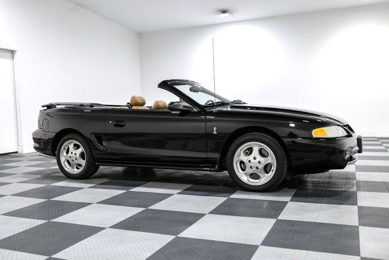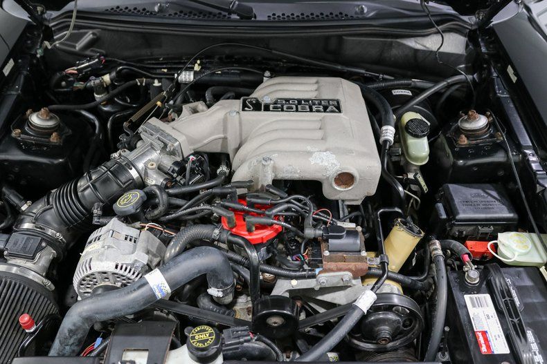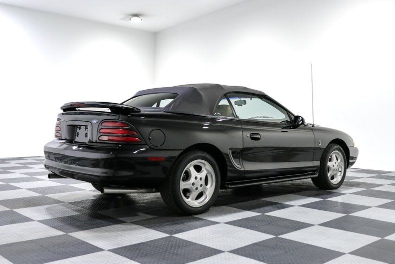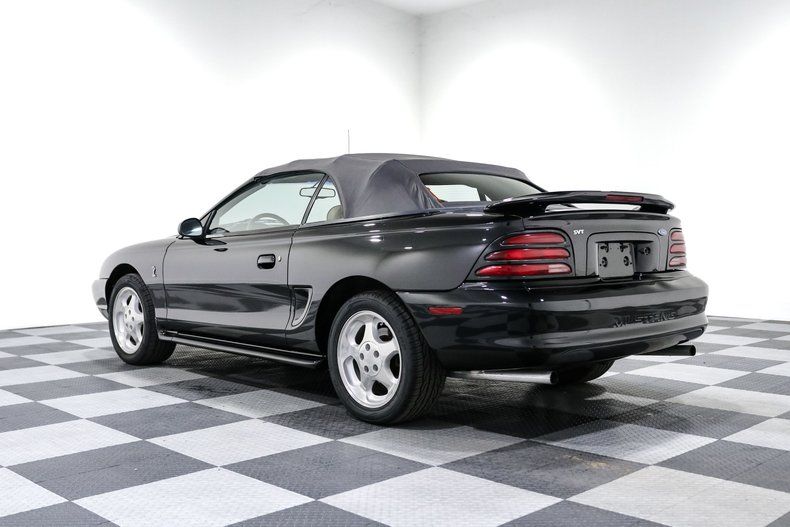 Finished in black with a driver quality shine, the body carries the aggressive yet clean lines that defined the SN95 redesign. Drop the power convertible top and you get the full experience, equal parts muscle car and open air cruiser. The stance, the sound, and the heritage all come together in a way only a mid 90s Cobra can deliver.
