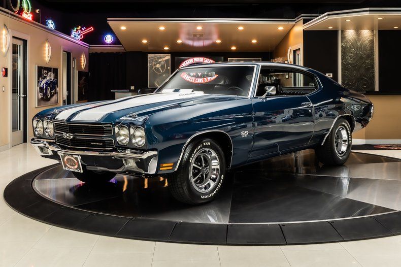 Check out this gorgeous 1970 Chevrolet Chevelle SS! This Chevelle has a beautifully straight body, Glossy Lemans Blue Paint finish, Painted White Stripes along the body, Black Interior, Dual Headlights, along with Polished Chrome and Stainless Steel Components all around. This Chevelle has undergone a complete Frame Off Restoration with a very high attention to detail that's seen throughout! Under the hood sits a Numbers Matching GM 396ci V8 Engine mated to a Muncie 4-Speed Manual Transmission! Power is put to the pavement through a 12 Bolt Rear End with Posi! This 70' is a blast to drive and you can cruise around town with ease thanks to the equipped Power Brakes (front disc) and Power Steering on this Chevelle!