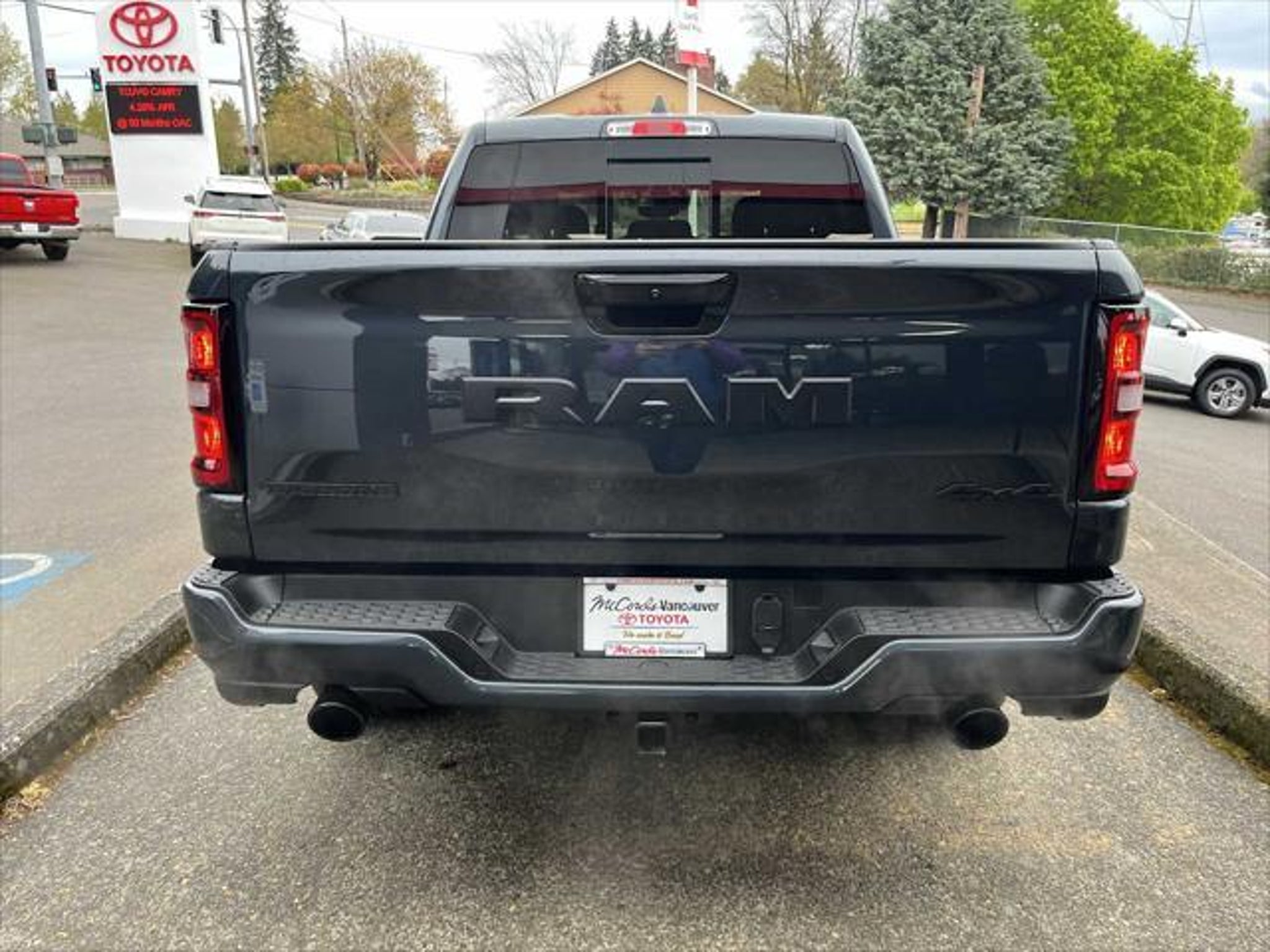 CARFAX 1-Owner, LOW MILES - 5,794! $3,600 below Kelley Blue Book!, FUEL EFFICIENT 20 MPG Hwy/16 MPG City! Heated Seats, Sunroof, Cross-Traffic Alert, Blind Spot Monitor, Apple CarPlay®, Remote Engine Start, CD Player, 4x4 READ MORE! KEY FEATURES INCLUDE Back-Up Camera, iPod/MP3 Input, CD Player, Trailer Hitch, Remote Engine Start, Apple CarPlay®, Blind Spot Monitor, Cross-Traffic Alert. 4x4, Keyless Entry, Privacy Glass, Child Safety Locks, Electronic Stability Control. OPTION PACKAGES BIG HORN LEVEL 2 EQUIPMENT GROUP SiriusXM Radio Service, Power Adjustable Pedals, Leather Wrapped Steering Wheel, 12 Touchscreen Display, Glove Box Lamp, Auto Power-Folding Mirrors, 115V Auxiliary Rear Power Outlet, Media Hub w/2 Charge Only USBs, Heated Front Seats, Security Alarm, Black Premium Power Mirrors, Premium Overhead Console, 9 Amplified Speakers w/Subwoofer, Disassociated Touchscreen Display, Body Color Fender Flares, Remote Tailgate Release, 115V Auxiliary Power Outlet, LED Dome Lamp w/On/Off Switch, Universal Garage Door Opener, 2nd Row In Floor Storage Bins, Sun Visors w/Illuminated Vanity Mirrors, LED Footwell Lighting, Rear Window Defroster, Rear View Auto Dim Mirror, Rear Power Sliding Window, GPS Navigation, Overhead LED Lamps, Wheels: 20 x 9 Aluminum Chrome Clad, ENGINE: 5.7L V8 HEMI MDS VVT ETORQUE Active Noise Control System, Heavy Duty Engine Cooling, Passive Tuned Mass Damper, GVWR: 7,100 lbs, Dual Rear Exhaust w/Bright Tips, G/T Exhaust, 18 Aluminum Spare Wheel, DUAL-PANE PANORAMIC SUNROOF Dome Dual LED Reading Lamp, NIGHT EDITION Tires: 275/55R20 OWL All Season, Bridgestone Brand Tires, Accent Color Premium Power Mirrors, Exterior Mirrors w/Supplemental Signals, Black Headlamp Bezels, Exterior Mirrors Courtesy Lamps, Grille Black Surround Black Mesh, Auto Power-Folding Mirrors, Wheels: 20 x 9.0 Aluminum Painted Clad, Auto Dim Exterior Driver Mirror, Black Exterior Truck Badging, Anti-Spin Differential Rear Axle, Accent Color Door Handles, Accent Color Tailgate Handle, Black Interior Accents, Dual Exhaust w/Black Tips, Body Color Front Bumper, Body Color Rear Bumper w/Step Pads, Black Tail Lamp Bezels, RAM Grille Badge - Black, Black Painted Exterior Mirrors Caps, MOPAR FRONT & REAR RUBBER FLOOR MATS, TRANSMISSION: 8-SPEED AUTOMATIC (8HP75). Ram Big Horn with Forged Blue Metallic exterior and Black interior features a 8 Cylinder Engine with 395 HP at 5600 RPM*. VEHICLE REVIEWS Great Gas Mileage: 20 MPG Hwy. EXCELLENT VALUE This 1500 is priced $3,600 below Kelley Blue Book. PURCHASE WITH CONFIDENCE CARFAX 1-Owner OUR PROMISE McCords Vancouver Toyota-Scion is a family owned and operated dealership since 1982. Our promise is to provide our customers with the best possible reconditioned used car on the market. We will run every used vehicle we offer for sale against the NHTSA (National Highway Traffic Safety Administration) recall data base and will address any recall before we sell it to you. Every used car is run through a 160 point quality control inspection- We pay our mechanics to find any issues so you dont have to. We offer a 5 day 500 mile No Questions Asked money back guarantee, a 12mo/12k mile limited powertrain warranty on any vehicle that is 14 years or newer and has less than 125k miles. The warranty allows you to fix the vehicle at any shop that you choose- not just us. Plus our Certified Toyota program that gives you 1yr/12k mile comprehensive warranty coverage and 7yr/100k mile powertrain coverage. MCCORDS VALUE PRICE We research our market and Value price every vehicle we offer for sale with a very competitive price. Less time negotiating and more time finding the vehicle that best matches your wants and needs. We look forward to your visit. Pricing analysis performed on 4/8/2026. Horsepower calculations based on trim engine configuration. Fuel economy calculations based on original manufacturer data for trim engine configuration. Please confirm the accuracy of the included equipment by calling us prior to purchase.