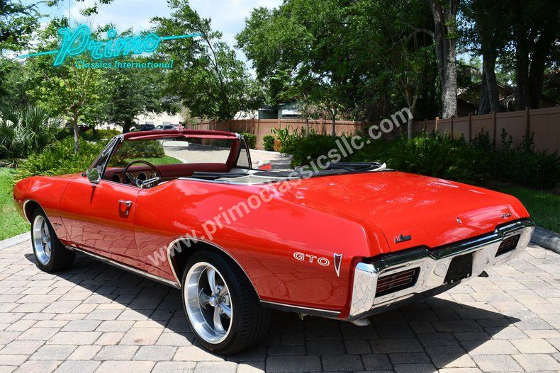 Remarkable Restoration On this amazing 1968 Pontiac GTO convertible Tribute :: Powered by 383 CID Stroker Engine, TH400 Automatic Transmission W/Hurst His & Hers, Floors Shifter, 3:73 Differential Gear W/Posi, Holley Sniper Fuel Injection System From Tank To Injectors, Aluminum Heads, Edelbrock Intake, CVF Serpentine Belt System, Red Exterior W/White Convertible Top, New Parchment Interior, Dakota Gauges, Endura Bumper, Electric Hideaway Headlights, New GTO Badges & Hurst Badges, Re-chromed Dash W/ Woodgrain, Air Conditioning, Power Steering W/ Tilt Column, Power Brakes W/ Front Disc Conversion, Power Windows, Power Locks, 1,700 Miles Since Completion, Classic Audio Sound Stereo, Beautiful Convertible Ready to Enjoy! Feel free to call us anytime! Financing available! Call Jacob 863-899-1565, or Dan at 863-226-8590, or Danny 863-944-8755, or Monica 863-333-8286, or email sales1@primoclassicsint.com