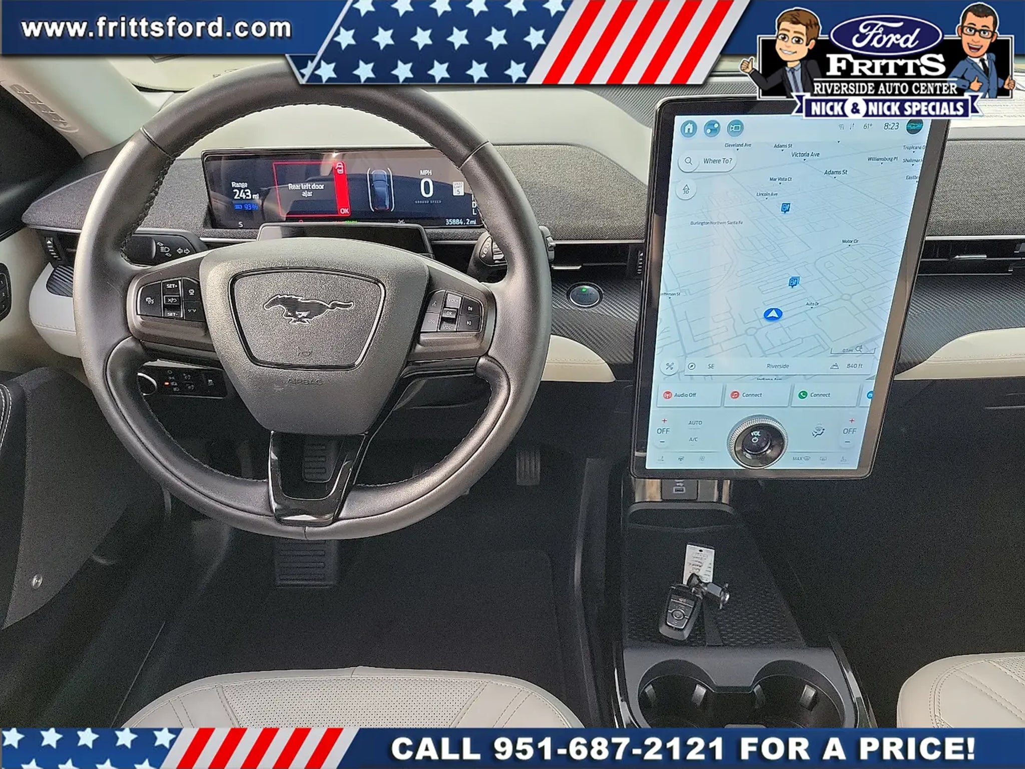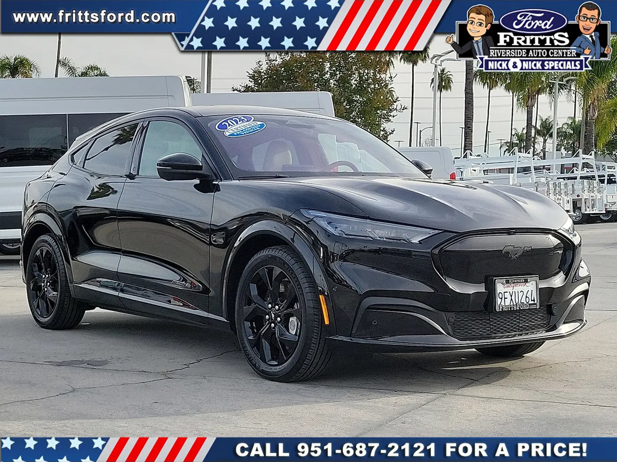 ** 139-POINT INSPECTION** **ONE OWNER** **CLEAN CAR FAX** **NO ACCIDENTS OR DAMAGE REPORTED** **COMPLETE DETAIL** **STILL UNDER FACTORY WARRANTY** Ready to take home today! **FORD BLUE ADVANTAGE CERTIFIED** Black Painted Center Wheel Cap Equipment Group 300A Grille Pony w/Painted Black Outline Mach-E 4X Badge w/ Painted Black Outline Mustang Nite Pony Package Navigation system: Connected Navigation Wheels: 19Hi-Gloss Black Painted. Certified. CARFAX One-Owner. Shadow Black AWD Single-Speed Automatic Electric Motor 97/85 City/Highway MPG 97/85 City/Highway MPGCertification Program Details: Ford Blue Advantage: Blue Certified* 139 Point Inspection* Transferable Warranty* Vehicle History* Warranty Deductible: $100* Roadside Assistance* Limited Warranty: 3 Month/4000 Mile (whichever comes first) after new car warranty expires or from certified purchase date* and 11000 FordPass Rewards Points to use toward first maintenance visitCall Internet for the best price at .Fritts Ford New & Used Ford Dealer Serving Riverside Corona San Bernardino Moreno Valley and Fontana Invites You to Become a Ford Savant. People wishing to upgrade to a new 2014-2015 Ford Fusion Focus F-150 Explorer or Escape are invited to visit our showroom and take a test drive today. When it comes to our pre-owned car inventory at Fritts Ford we go the extra mile in making sure that each and every model that gets slated for sale undergoes a thorough inspection first. Equipment Group 300A Mustang Nite Pony Package (Black Painted Center Wheel Cap Grille Pony w/Painted Black Outline Mach-E 4X Badge w/ Painted Black Outline and Wheels: 19Hi-Gloss Black Painted) Ford Blue Advantage: Blue Certified Certified Navigation system: Connected Navigation 10 Speakers 4-Wheel Disc Brakes ABS brakes Air Conditioning Alloy wheels AM/FM radio: SiriusXM with 360L AM/FM Stereo Apple CarPlay/Android Auto Auto High-beam Headlights Auto-dimming Rear-View mirror Automatic temperature control Axle Ratio: 9.05 Brake assist Bumpers: body-color Compass Delay-off headlights Driver door bin Driver vanity mirror Dual front impact airbags Dual front side impact airbags Electronic Stability Control Emergency communication system: 911 Assist Exterior Parking Camera Rear Four wheel independent suspension Front anti-roll bar Front Bucket Seats Front Center Armrest Front dual zone A/C Front reading lights Fully automatic headlights Garage door transmitter Heated door mirrors Heated front seats Heated Perforated ActiveX Bucket Seats Heated steering wheel Illuminated entry Knee airbag Low tire pressure warning Memory seat Occupant sensing airbag Outside temperature display Overhead airbag Overhead console Panic alarm Passenger door bin Passenger vanity mirror Power door mirrors Power driver seat Power Liftgate Power passenger seat Power steering Power windows Radio data system Rain sensing wipers Rear anti-roll bar Rear seat center armrest Rear side impact airbag Rear window defroster Rear window wiper Remote keyless entry Security system SiriusXM Radio w/360L Speed control Speed-sensing steering Speed-Sensitive Wipers Split folding rear seat Spoiler Steering wheel mounted audio controls SYNC 4A w/Enhanced Voice Recognition Telescoping steering wheel Tilt steering wheel Traction control Trip computer Turn signal indicator mirrors and Variably intermittent wipers.