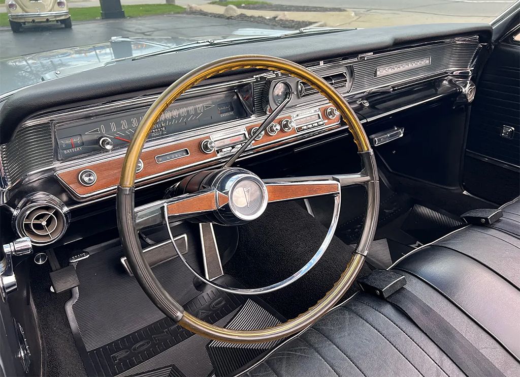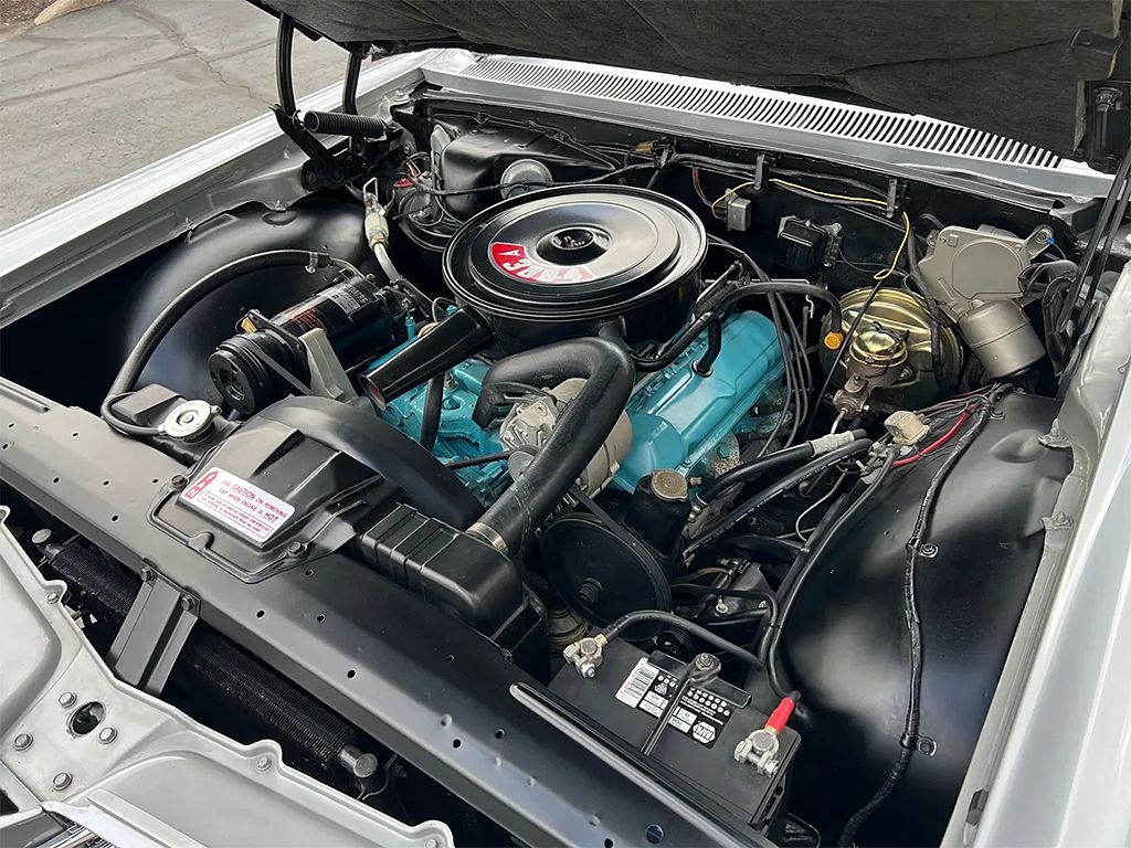 Only 15,000 original miles! Clean original California car, factory (D) Silvermist Metallic paint, original (260) Black deluxe vinyl interior, correct (2) Black convertible top, original 389ci/303hp V8 engine, factory 4 bbl, factory intake & exhaust manifolds, factory air cleaner & valve covers, power steering, power brakes, factory air conditioning, original Hydromatic automatic transmission, factory bench seat, tilt column with factory wheel, factory dash & gauges, original am-fm push-button radio with reverb, factory power windows, power seat, power top, factory electro-cruise speed sensor, factory remote driver’s mirror, factory single exhaust, factory rear axle, HR78-14 white wall radial tires, factory 8-lug wheels, factory Soft-Ray front windshield, original owner’s manuals, original courtesy lamps, electric fuel pump, T3 headlights, professionally ceramic coated, PHS documented, Collector Quality!