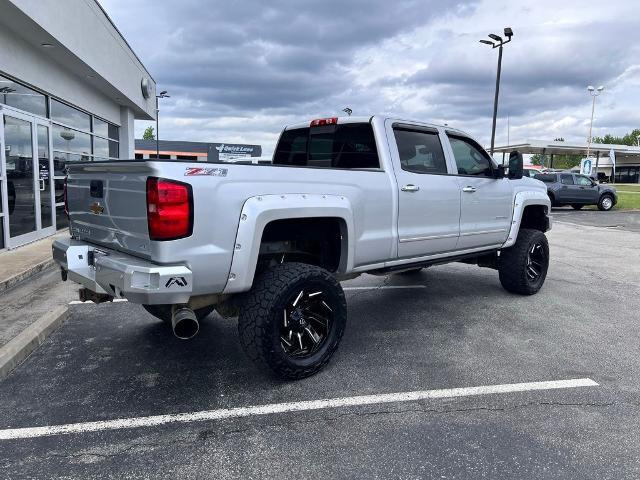 This 2015 Chevrolet Silverado 2500HD LTZ in Silver Ice Metallic comes with the following features: Duramax 6.6L V8 Turbodiesel Allison 1000 6-Speed Automatic 4WD Driver Alert Package (Ultrasonic Front & Rear Park Assist), Duramax Plus Package (Bluetooth? For Phone, Engine Block Heater, Radio: AM/FM w/Chevrolet MyLink & Nav, and SiriusXM Satellite Radio), Heavy-Duty Trailering Equipment, LTZ Plus Package (Power-Adjustable Pedals), Off-Road Z71 Package (Hill Descent Control and Z71 Badging), Preferred Equipment Group 1LZ (110-Volt AC Power Outlet, 4.2 Diagonal Color Display Driver Info Center, Auto-Dimming Inside Rear-View Mirror, Chrome Bodyside Moldings, Chrome Door Handles, Chrome Mirror Caps, Color-Keyed Carpeting Floor Covering, Deep-Tinted Glass, Driver & Front Passenger Visors, Dual-Zone Automatic Climate Control, Electric Rear-Window Defogger, Electronic Shift Transfer Case, EZ-Lift & Lower Tailgate, Front Halogen Fog Lamps, Heated Power-Adjustable Outside Mirrors, Integrated Trailer Brake Controller, Leather-Wrapped Steering Wheel, Manual Tilt-Wheel/Telescoping Steering Column, OnStar 4G LTE Wi-Fi Hotspot, OnStar 6 Months Directions/Connections Plan, Power Sliding Rear Window w/Defogger, Power Windows w/Driver Express Up & Down, Rear 60/40 Folding Bench Seat (Folds Up), Rear Vision Camera w/Dynamic Guide Lines, Rear Wheelhouse Liners, Remote Keyless Entry, Remote Vehicle Starter System, Single Slot CD/MP3 Player, Steering Wheel Audio Controls, Theft Deterrent System (Unauthorized Entry), and Universal Home Remote), Standard Suspension Package, Allison 1000 6-Speed Automatic, 4WD, Black Leather, 18 Polished Aluminum Wheels, 4-Wheel Disc Brakes, 6 Speakers, ABS brakes, Air Conditioning, Alloy wheels, AM/FM radio: SiriusXM, Auto-dimming door mirrors, Auto-dimming Rear-View mirror, Automatic temperature control, Bodyside moldings, BOSE Sound w/6 Speaker System, Brake assist, Bumpers: chrome, Camper & 5th Wheel Trailer Wiring Provisions, CD player, Compass, Delay-off headlights, Driver door bin, Driver vanity mirror, Dual front impact airbags, Dual front side impact airbags, Electronic Stability Control, Emergency communication system: OnStar Directions & Connections, Exhaust Brake, Exterior Parking Camera Rear, Floor Mounted Reconfigurable Console, Front 40/20/40 Split Bench Seat, Front anti-roll bar, Front Center Armrest w/Storage, Front dual zone A/C, Front fog lights, Front Full Feature Bucket Seats, Front reading lights, Front wheel independent suspension, Fully automatic headlights, Garage door t