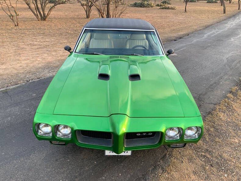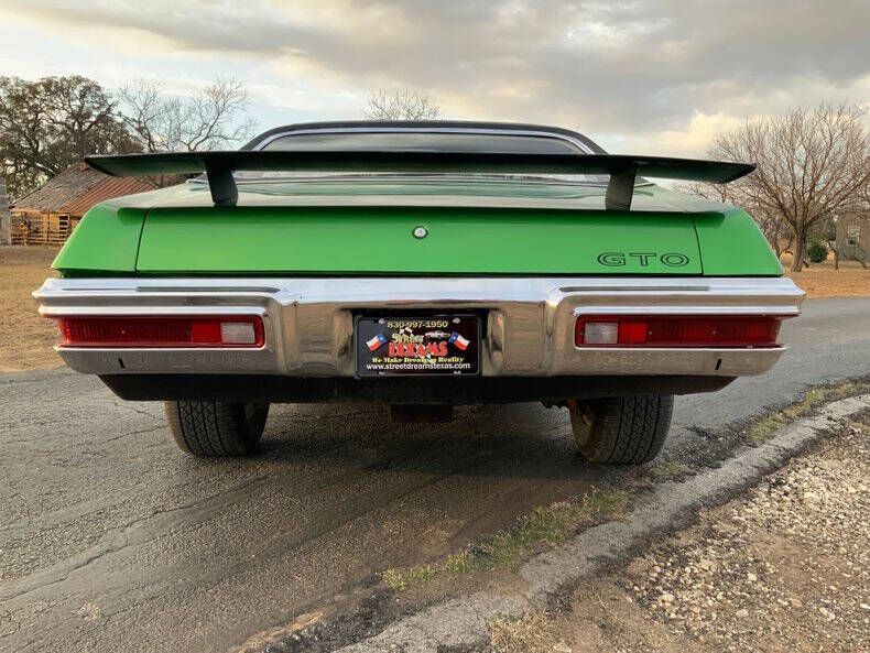 Since September 1999, Street Dreams Texas has been bringing classic American muscle and collector cars to enthusiasts around the world. This 1970 Pontiac GTO is a driver-focused muscle car with strong mechanicals, an eye-catching presence, and plenty of room for the next owner to take it in any direction they choose. Finished in a bright green exterior with a black vinyl top, the car presents with an amateur-quality paint job, making this an ideal candidate for someone who wants to enjoy it now and improve or personalize it later. While the cosmetics leave room for refinement, the car runs extremely strong, pulls hard through the gears, and will easily light the tires, delivering the raw muscle car experience these cars are known for. Power comes from a Pontiac 400ci V8 backed by a Muncie 4-speed manual transmission, giving this GTO the kind of engaging, hands-on driving feel enthusiasts crave. Inside, you'll find Sandalwood bucket seats, maintaining a classic muscle-era interior look that complements the car's aggressive personality. Originally produced in Pontiac, Michigan, during the first week of February, this GTO has since undergone a fairly extensive restoration. The car comes with ample documentation, including paperwork and photos showing bodywork and paint stages, offering valuable insight into the work performed. Many of the restoration components were sourced through Original Parts Group, a respected supplier in the Pontiac restoration world. This GTO is being offered as-is, and Street Dreams Texas ds not plan to invest further into the vehicle, making it an excellent opportunity for an enthusiast who wants a solid-running muscle car to modify, refine, or simply enjoy as a driver. Whether your vision includes cosmetic upgrades, performance enhancements, or just weekend tire smoke, this car is ready to be taken to the next level. Street Dreams Texas prides itself on helping classic and collector car enthusiasts turn their dreams into reality. If you're looking for a strong-running GTO with documentation, attitude, and open-ended potential, this one deserves a serious look. ¾ Call 830-997-1950 to learn more. Worldwide delivery, insurance, and financing