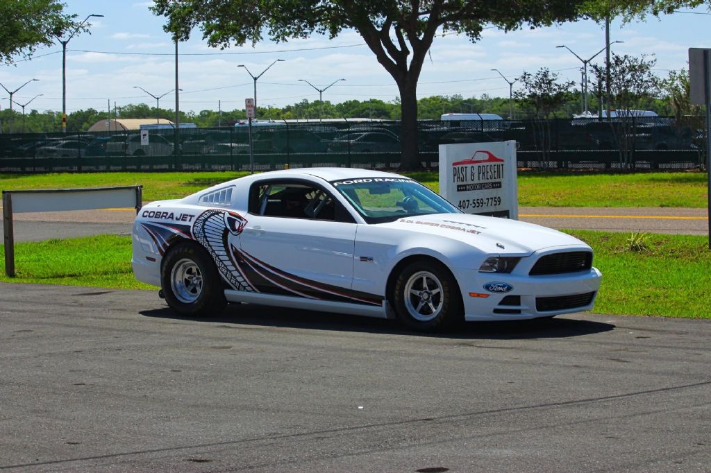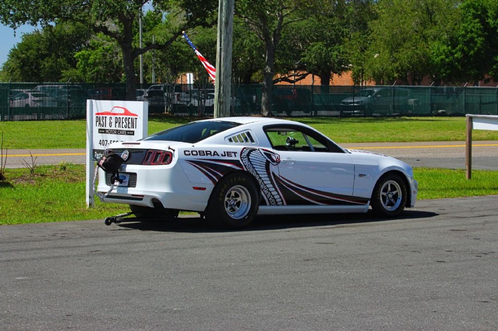 2014 Ford Mustang Cobra Jet Factory Race Car Ultra Rare Private Collection Turnkey Drag Car When it comes to factory-built race cars, very few names carry the weight and legacy of the Cobra Jet and this 2014 Ford Mustang Cobra Jet represents the pinnacle of that lineage. Built by Ford Performance as a purpose-built drag racing machine, this is not a modified street car it is a true factory race car engineered from the ground up for one thing winning on the track. Produced in extremely limited numbers, Cobra Jets were never intended for street use and were delivered directly to racers as turnkey competition vehicles. These cars are not street legal and were purpose-built for NHRA competition, featuring lightweight construction, race-specific suspension, and full safety equipment including a roll cage. Finished in a clean and aggressive white exterior over a race-prepped black interior, this example comes from a private collection and shows very low usage, making it a rare opportunity to acquire a near-new factory drag car. With only minimal miles since new, it has been preserved in collector-grade condition. Power comes from a 5.0L V8 engine equipped with a Whipple supercharger, delivering the kind of performance these Cobra Jets are known for. This combination is engineered for maximum output and durability, capable of producing extreme horsepower and running deep into the 8 second range in the quarter mile at well over 150 mph. The 2014 model year brought further refinement including improved driveline components and high-speed stability enhancements such as a factory parachute setup which this example is equipped with. It also features racing slicks and all the hardware expected from a serious competition vehicle. This is more than just a car it is a piece of Ford Performance history. Whether you are a serious collector, racer, or enthusiast looking to own something truly unique, opportunities like this are few and far between. Highlights and Features Finished in white with black race interior From a private collection Very low miles since new 5.0L V8 engine with Whipple supercharger Factory built high performance drag racing setup Purpose built lightweight chassis NHRA style roll cage and race safety equipment Factory parachute system Racing tires and drag setup Engineered for competitive drag racing Capable of extreme quarter mile performance Turnkey race car ready for track or collection If you understand Cobra Jets, you already know this is not something you see every day. This is factory performance at its highest level built in limited numbers and rarely available on the open market. While we do our best to provide the highest quality muscle cars with an honest and reliable description and realize the importance of transparency when selling vehicles. That being said, we have not built, modified, changed or personally owned this vehicle. Whether this vehicle is consigned or owned by Past & Present Motor Cars we do not know the vehicles complete history since new. We want to be clear and try to answer any questions our customers might have prior to purchasing. Additionally, we not only welcome but we encourage 3rd party independent inspections. Please inquire prior to purchase to make sure the advertised vehicle has not already been sold. We list our vehicles on multiple websites and a vehicle can sell at any time. If a customer chooses to purchase sight unseen (many of our customers choose this option) the customer accepts the vehicle AS IS and WHERE IS and understands we cannot address concerns after purchase. For this reason, it's important all concerns are addressed prior to purchase. We make every effort to present accurate and reliable information, but use of this information is voluntary, and should only be deemed reliable after an independent review of its accuracy, completeness, and timeliness. It is the sole responsibility of the customer to verify the existence of options, accessories and the vehicle condition before time of sale. Financing is Available with low rates and Vehicle Shipping is available from our Showroom to your Garage. A Classic Car Warranty is Available for Purchase from a 3rd Party. Please speak to our Sales Associate or Company Representative for more information. Our team is working and available anytime by Phone or Text for your convenience at 407-559-7759. Thank you for your interest!