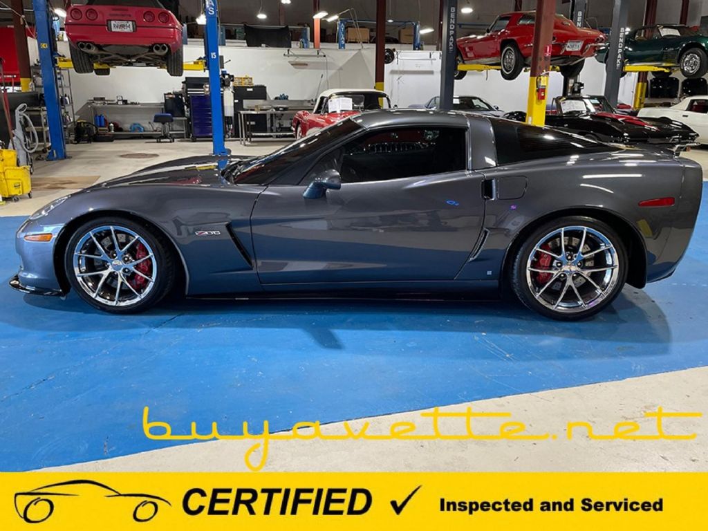 BUYAVETTE CERTIFIED!! SEE THE FREE CARFAX AND MORE PHOTOS OF THIS CORVETTE, PLUS MANY MORE AT WWW.BUYAVETTE.NET! OUR CERTIFIED VEHICLES ARE PROFESSIONALLY INSPECTED, CAREFULLY SERVICED, AND BACKED BY A LIMITED WARRANTY AT NO EXTRA COST. Cyber Gray exterior, Dark Titanium interior. 525hp LS7 engine, 6 speed manual transmission, posi rear-end. Features include the $6,515 3LZ Preferred Equipment Group (leather-wrapped instrument panel, door panels, and center console lid, unique bias-graphic pattern for center console, dual heated seats with power driver's side, tilt-n-tele, universal garage door transmitter, memory package, Bluetooth package), chrome Spider wheels, Heads Up Display, OnStar, dry-sump oil system, HID headlights, dual zone electronic climate control, fog lamps, keyless entry and start, power windows, power locks, power steering, power brakes, power mirrors, cruise control, ABS, traction control, Active Handling. Coming with a clean Carfax and LOADED with options, this 2009 Corvette Z06 shows just 28,070 miles, and is in nice condition. This car's paint is good-vg, with a great shine. Factory chrome wheels are vg-exc, and tires show an average of 8/32nds tread depth remaining. The interior of this 2009 Corvette Z06 shows good-vg factory leather seats, vg-exc steering wheel and door panels, and exc center console. Additions to this car include Corsa stainless steel long tube headers, Corsa axle-back performance exhaust, Corsa carbon fiber cold air intake, carbon fiber rear spoiler, window tint, rear cargo organizer, aluminum pedals, 427 fuel rail cover plates, radiator support plaque, Blue headlight and underhood bulbs, full color C6 logo for the hood insulation, valve stem caps with C6 logo, ZR1 style front splitter and side skirts, simulated carbon fiber rear spoiler, and a Kenwood Apple CarPlay/Android Auto/BT/USB stereo. BUYAVETTE CERTIFIED!! SEE THE FREE CARFAX AND MORE PHOTOS OF THIS CORVETTE, PLUS MANY MORE AT WWW.BUYAVETTE.NET! OUR CERTIFIED VEHICLES ARE PROFESSIONALLY INSPECTED, CAREFULLY SERVICED, AND BACKED BY A LIMITED WARRANTY AT NO EXTRA COST. Call us today to bring home this loaded '09 Z06! 28K Miles. FREE 2 YEAR/50K ADDITIONAL MILE WARRANTY, GOOD AT ANY REPAIR FACILITY NATIONWIDE!! Our Price: $53,999 or 20% down with payments as low as $745/month W.A.C.