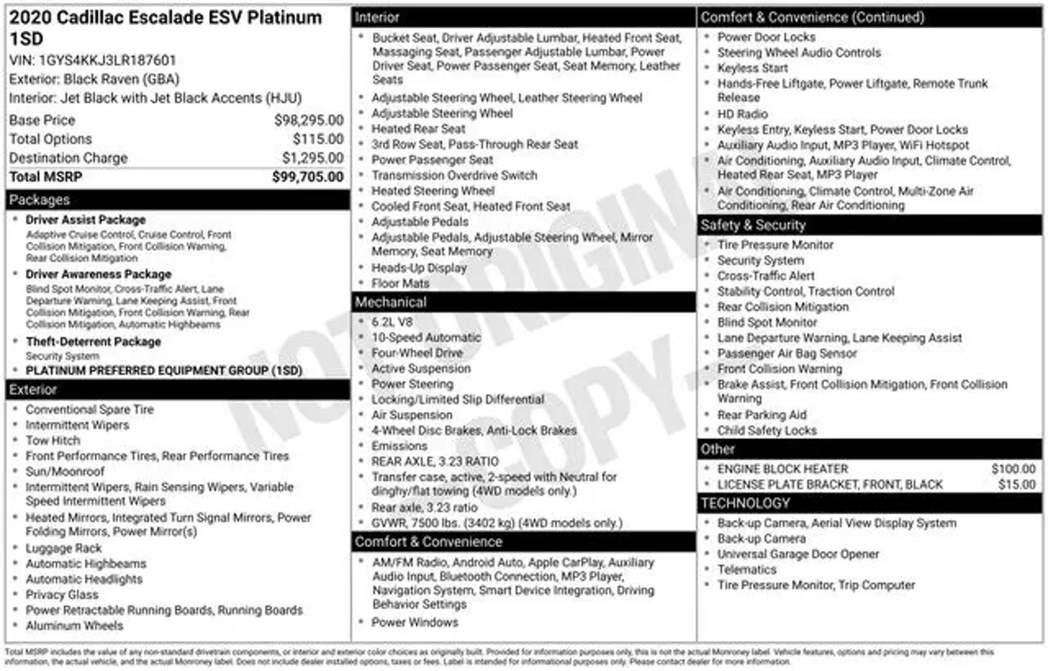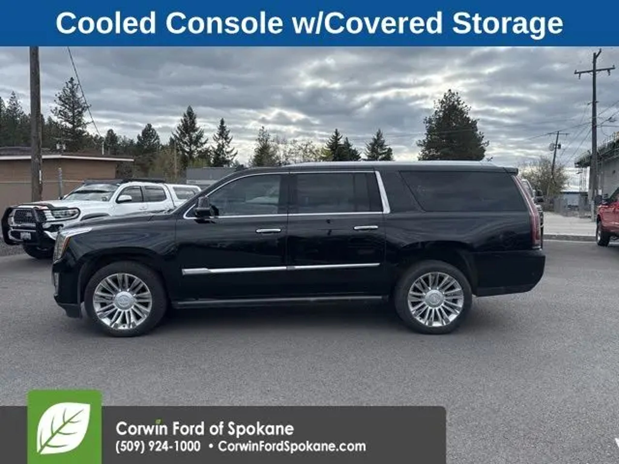 Introducing the 2020 Cadillac Escalade ESV Platinum Edition - a true masterpiece of automotive engineering and luxury. This exceptional SUV is the embodiment of power, sophistication, and uncompromising comfort. - Bose Premium Surround Sound System - Cooled Console w/Covered Storage - Front dual zone A/C - Memory seat - Advanced Adaptive Cruise Control - Power Liftgate - Adaptive suspension - Heated steering wheel - Exterior Parking Camera Rear - Heated and Ventilated front seats - Heated rear seats - Power moonroof Beneath the stunning black exterior lies a commanding 6.2L V8 engine, paired with a seamless 10-Speed Automatic transmission and 4-Wheel Drive, delivering a thrilling driving experience. With an impressive 21 MPG on the highway, this Escalade ESV Platinum Edition offers the perfect balance of power and efficiency. The interior of this Cadillac is a true sanctuary, crafted with the finest materials and attention to detail. Sink into the luxurious, cooled and heated leather seats, and let the advanced Bose audio system transport you. The spacious cabin and versatile cargo area make this Escalade ESV the ultimate companion for your adventures, whether it's a family road trip or a night on the town. Experience the pinnacle of Cadillac engineering and design with this 2020 Escalade ESV Platinum Edition. Packed with cutting-edge technology, unparalleled comfort, and undeniable presence, this SUV is the embodiment of everything you desire in a premium vehicle. See us today at Corwin Ford Spokane. Family owned for over 100 years! Excellent selection of New and Used vehicles, Financing options. Serving Spokane, Pasco, Kennewick, Richland, Walla Walla, Hermiston, Umatilla, Yakima, Sunnyside, Grandview, Dayton, Prescott, Denton County, Franklin County, Yakima County, Spokane County, Adams County, Grant County, and the Greater Columbia Basin. *All Prices plus applicable sales tax, license, and a negotiable documentary service fee up to $200 may be added to sales price or capitalized cost of the vehicle. One vehicle unless otherwise noted and subject to prior sale without notice. While supplies last. EPA mileage estimates are for newly manufactured vehicles only. Your actual mileage will vary depending on how you drive and maintain your vehicle.