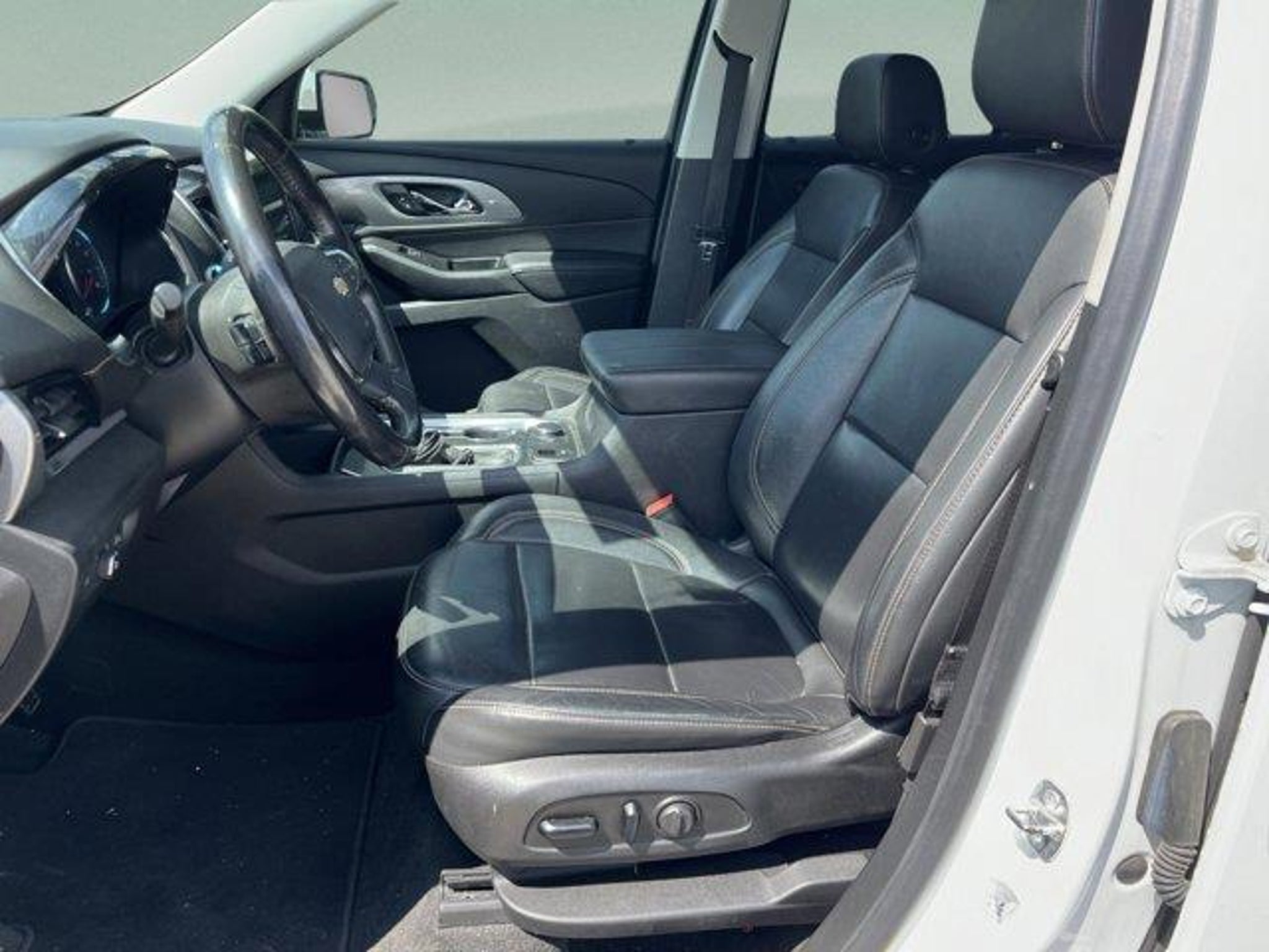 Clean CARFAX. Summit White 2019 Chevrolet Traverse RS 2LT FWD 9-Speed Automatic 2.0L Turbocharged Traverse RS 2LT, 4D Sport Utility, 2.0L Turbocharged, 9-Speed Automatic, FWD, Summit White, Black Leather, 10 Speakers, 3.49 Axle Ratio, 3rd row seats: split-bench, 4-Wheel Disc Brakes, 7-Passenger Seating (2-2-3 Seating Configuration), ABS brakes, Air Conditioning, Alloy wheels, AM/FM radio: SiriusXM, Apple CarPlay/Android Auto, Auto-dimming door mirrors, Auto-dimming Rear-View mirror, Automatic temperature control, Bose Premium 10-Speaker Audio System Feature, Brake assist, Bumpers: body-color, Cargo Package (LPO), Compass, Delay-off headlights, Driver door bin, Driver vanity mirror, Dual front impact airbags, Dual front side impact airbags, Electronic Stability Control, Emergency communication system, Four wheel independent suspension, Front anti-roll bar, Front Bucket Seats, Front Center Armrest, Front dual zone A/C, Front fog lights, Front License Plate Bracket Mounting Package, Front reading lights, Fully automatic headlights, Garage door transmitter, Heated door mirrors, Heated front seats, High-Intensity Discharge Headlights, Horizontal Cargo Net (LPO), Illuminated entry, Leather-Appointed Seat Trim, Low tire pressure warning, Navigation System, Occupant sensing airbag, Outside temperature display, Overhead airbag, Overhead console, Panic alarm, Passenger door bin, Passenger vanity mirror, Power door mirrors, Power driver seat, Power Liftgate, Power passenger seat, Power steering, Power windows, Preferred Equipment Group 2LT, Premium audio system: Chevrolet MyLink, Radio data system, Radio: Chevrolet Infotainment AM/FM Stereo w/Navigation, Rear air conditioning, Rear anti-roll bar, Rear reading lights, Rear window defroster, Rear window wiper, Remote keyless entry, Retractable Cargo Shade, Roof rack: rails only, Security system, SiriusXM Radio, Speed control, Speed-sensing steering, Spoiler, Steering wheel mounted audio controls, Tachometer, Telescoping steering wheel, Tilt steering wheel, Traction control, Trip computer, Turn signal indicator mirrors, Variably intermittent wipers, Vertical Cargo Net (LPO), Voltmeter, Wheels: 20 Dark Android Painted Aluminum.Recent Arrival! 20/26 City/Highway MPGRECALL NOTICE: Some vehicles offered for sale may be subject to unrepaired manufacturer safety recalls. To determine the recall status of a vehicle, visit https://www.nhtsa.gov/recalls.