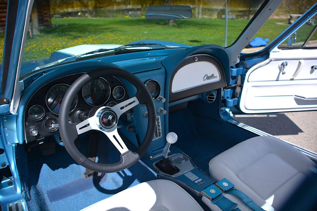 1965 Corvette Stingray Coupe. Excellent condition, new crate motor and Tremec 5 speed. Nassau Blue with White Leather Interior, (as per the trim tag) One of 8,186 coupes built in 1965. Power steering, power brakes, rare power windows, power antenna car. The car had a full professional restoration and new paint in 2014. I purchased the car out of Ontario, Canada 3 years ago. The dash is like new, the interior show-worthy, and the paint is an exceptional 9/10. Since the paint was still exceptional, I’ve only had the mechanical side addressed. All new parts, crate motor and work have been done the past 2 years by professional builders. NEW… -355 professionally rebuilt crate motor by ‘Canadian Crate Engines’ of Burnaby, BC -381 HP/414 TRQ on the dyno. Details and dyno sheet can be forwarded. -Tremec TKX 5 speed, and custom (removable) transmission mount -hydraulic clutch kit and custom pedal, clutch slave cylinder, flywheel -Borgeson power steering -Vintage air conditioning, custom lines, vents painted to match interior -Replica knock off wheels (bolt on) with Diamond Back Redline tires 215/70/15 -Dewitt’s aluminum radiator and matching electric fan and fitted shroud. An additional electrical ‘push’ fan is in front of the A/C condenser. Car runs at 160 all day long. -wiring harness (firewall forward) -water pump -MSD tach drive distributor -front end, ball joints, tie rod ends, control arms, bushings, sway bar bushings, idler arms -rear universal half shafts -all 4-wheel disc brakes rebuilt, calipers, discs, shoes and brake lines -dual master cylinder, proportioning valve, brake booster -pulleys and belts replaced - “Holley Retro-bright” LED headlights -Flow Master mufflers (sounds great!) -dual door mirrors -the frame, floor, and inner fenders were cleaned, sanded, prepped and painted - steering wheel, floor mats, aluminum billet shifter, white cue-ball shift knob -stock exhaust manifolds sand blasted and recoated -windshield sealed -rebuilt crate; 9.2:1 compression ratio can use 89 octane fuel. Vortec cylinder heads. Bore 4.030 X 3.480. QFT 600 CFM carburetor. 381 HP/414 Torq. Power band 1,800 to 5,700 RPM. See dyno sheet. In summary, it’s a beautiful, stock in appearance, lightly updated and modified iconic car. It has been upgraded mechanically to make it a more reliable and pleasurable driving experience. It’s ‘tight’ and drives excellent. A great cruiser, that also, and rips when you want it to. Cruising in 5th gear I’ve achieved 22 MPG. It’s timeless classic design always turns heads and gets waves, whether at the gas pumps or cruising to a show. One of the more admired and coveted classic cars that’s a collector’s dream. Located in Vernon, British Columbia, Canada $95,000 US (@ $130,000 Can) For US inquiries, I can provide resources that handle easy brokerage and shipping options. For more information, further details, photos and video, please contact… Andy Freeland stingrayajf@gmail.com