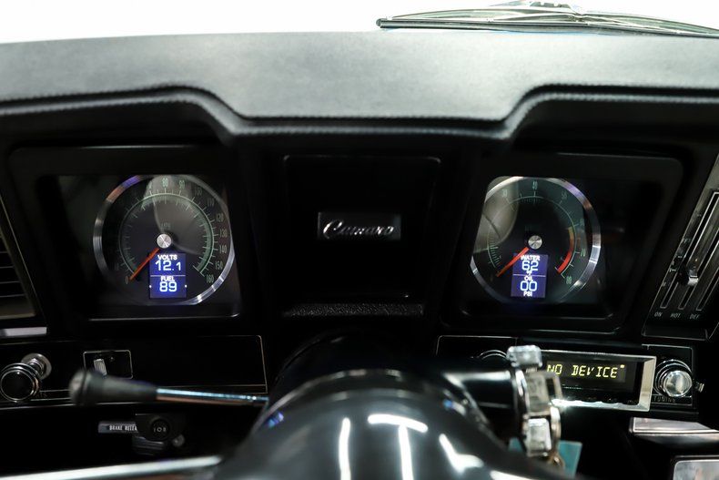 INTERIOR: This white houndstooth deluxe interior adds serious sizzle to an already hot Camaro and it's brand new. The deluxe molded door panels, fresh seat cushions, upholstery, and newly installed headrests give the cabin a crisp, upscale look. Fresh carpet lines the floor, while a tight fitting headliner with matching visors completes the clean appearance overhead. In the dash is a very cool set of retro style gauges, currently showing just 1,125 miles. The factory console has been updated with an overdrive automatic shift indicator, blending classic style with modern function. A retro stereo fits neatly in the factory location and sends tunes through 6x9 rear speakers along with speakers mounted in the kick panels. The reproduction SS steering wheel is mounted on a tilt column, and a full set of factory seatbelts is in place. Fresh, stylish, and exceptionally inviting, this is one attractive interior.