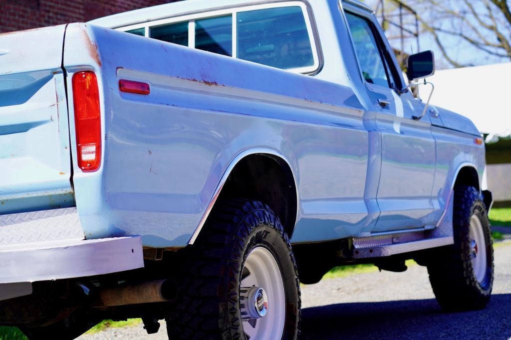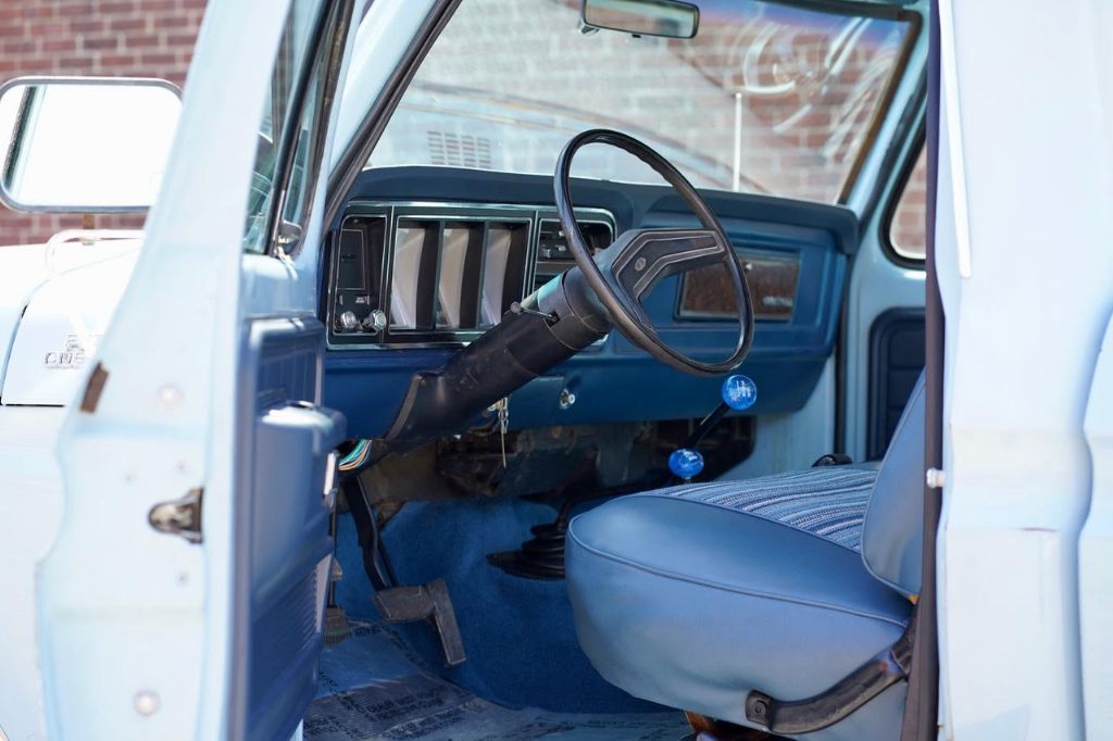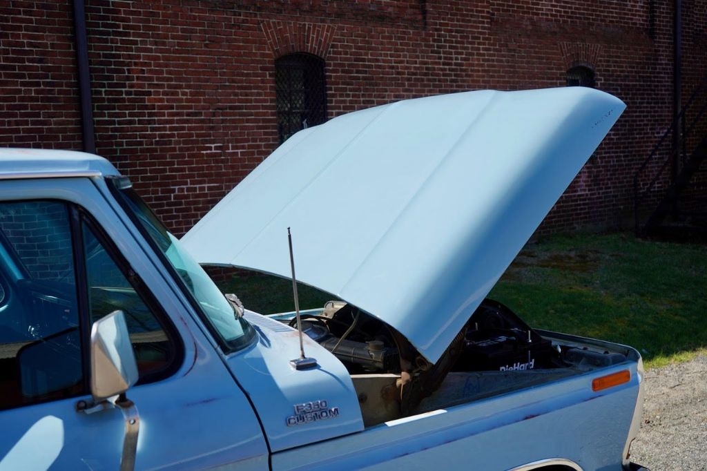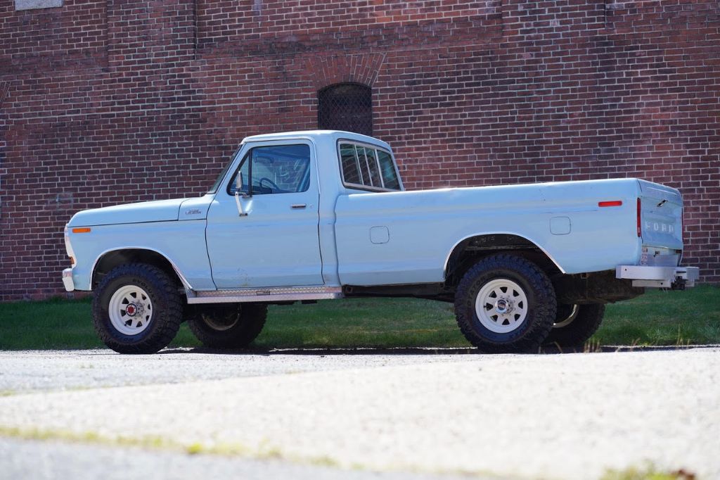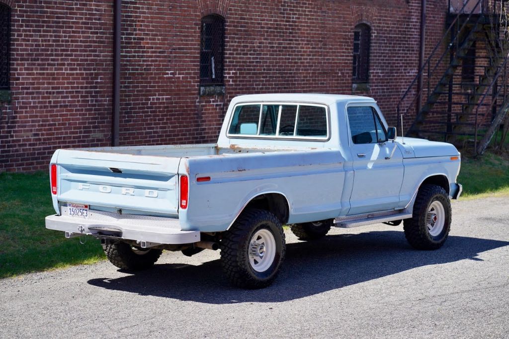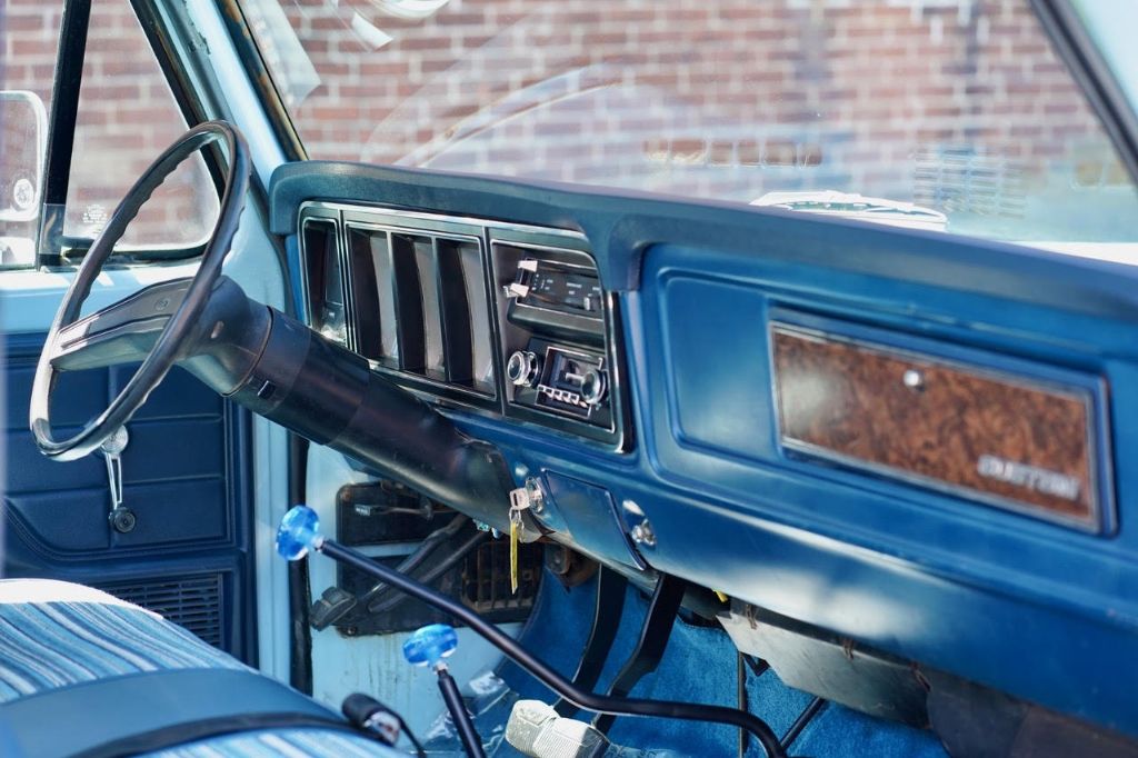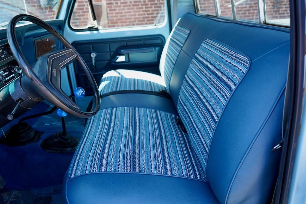 This solid rot-free West-Coast F-350 was originally built in San Jose and sold new at Wittman Ford in Lakeport, CA. This truck still retains original paint, dressed in the original colors “Light Medium Blue” over a Blue Knitted Vinyl bench seat interior. Original paint shows excellent with minor patina. The interior is completely re-done to factory specs with a new carpet, bench seat, dash pad, headliner and Bluetooth radio that works.