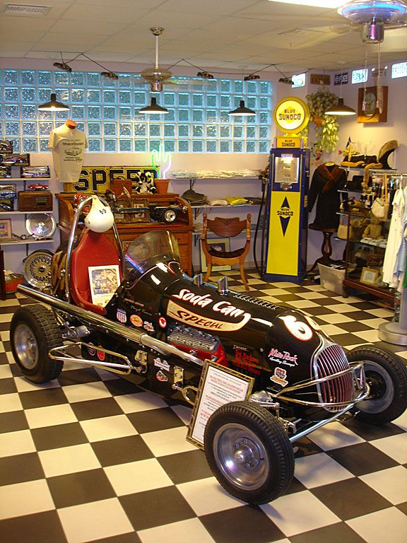 SORRY= SOLD !!!DISPLAYED IN OUR LOBBY, AT THE MOUNT DORA MUSEUM OF SPEED FOR ALL TO ENJOY, WAS THIS FLOYD TREVIS FULL MIDGET RACER. "FLOYD TREVIS-KRAFT" WAS BEST KNOWN FOR BUILDING "OFFY" ROADSTERS FOR THE F.I.A. CHAMPIONSHIPS AND USAC EVENTS FROM 1951-1961. HIS BUSINESS WAS BASED IN YOUNGSTOWN, OHIO. THESE MIDGETS FOUND THEMSELVES LOCATED ALL OVER THESE GREAT UNITED STATES IN RACE PROGRAMS. FLOYD TREVIS WAS WELL KNOWN AS "THE CADILLAC OF RACE CAR BUILDERS" OWING TO HIS 'QUALITY BUILD' WITH HIS 'EXTRA TOUCH'. HE IS A MEMBER OF THE SPRINT CAR HALL OF FAME (1990). JUST A FEW OF HIS MOST FAMOUS WINNING RACE CARS WERE A.J. FOYT IN THE "BOWLES SEAL-FAST SPECIAL" (INDY 1961), DICK RATHMAN ACHIEVING THE POLE POSITION AT INDY 1958 IN A TREVIS BUILT CAR AND EDDIE JOHNSON WINNING 6TH PLACE IN ONE AT INDY 1960. THIS PARTICULAR CAR IS ONE OF SIX BUILT. IT PASSED AROUND IN CALIFORNIA WHERE IT COMPETED IN SEVERAL EVENTS SPONSORED BY ED WAGNER. IT HAD BEEN DRIVEN BY RED MARLOWE WINNER OF THE 1956 ARDC ALLENTOWN RACE, IN PA. IT WAS NAMED #64 "THE SODA CAN SPECIAL", AFTER ITS ASSOCIATION WITH 'SODA CANYON NAPA VALLEY RACING'. SINCE THESE OLD GIRLS COULD BE SPONSORED BY HUNDRED'S OF SPONSORS DURING THEIR LIFE, WE DEDICATED OUR CAR WITH TRIBUTE SPONSORSHIP FROM A PERIOD CORRECT SODA BEVERAGE FIRM "WHITE ROCK BEVERAGES" (ONE OF AMERICA'S VERY FIRST BEVERAGE DISTRIBUTORS POPULAR IN THE 1930'S, '40-S AND '50'S). THIS 1947 FLOYD TREVIS-KRAFT MIDGET CARRIES A 120 CUBIC INCH / 183 HP FORD 60-V8 WITH 'EDDIE MEYER' HOLLYWOOD HEADS, 'ELDEBROCK' INTAKE, DUAL STROMBERGS W/ CUSTOM HEADERS, IN/OUT TRANSMISSION, ALUMINUM 'LIGHTWEIGHT' REAR-END, LEATHERETTE INTERIOR, PERIOD CORRECT SAFETY BELTS, CHROME ROLLBAR & NERF BARS, ORIGINAL MIDGET DRIVERS HELMET, FIRESTONE RACING TIRES ON DREYER RACING CAST ALUMINUM WHEELS. IT HAD A TOP SPEED OF 120 M.P.H. THIS 1/4 MIDGET WON THE SILVER AWARD AT THE WINTER PARK CONCOURSEVENT SOLD TO N.Y. COLLECTOR PH: 352-217-9868 or classicdc@aol.com