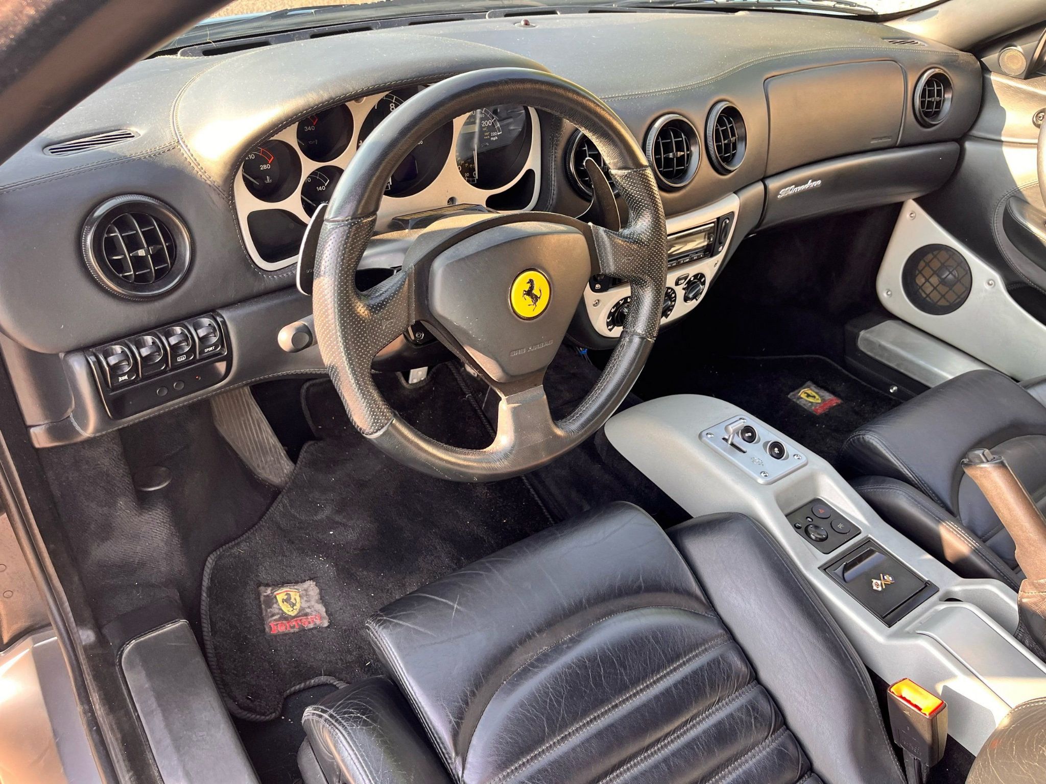 2000 Ferrari 360 Modena coupe finished in light blue exterior over midnight blue leather interior. This Ferrari 360 only has 26,587 original miles with the factory V8 and F1 gearbox. The body and paint are nearly flawless not one door ding and no chips in the paint. This Ferrari has the Ferrari shields on the fender and is very stock. The interior is in very nice condition. All the power seats. Power windows are all in working condition and does not have the sticky buttons like you typically find in most all Ferraris. These cars have done nothing but go up in value over the past several years and will continue to do so, as the Ferrari 360 is, very desirable and a very fun car to drive. Call Weisco motorcars for additional information or to schedule an appointment time to see the vehicle in person.