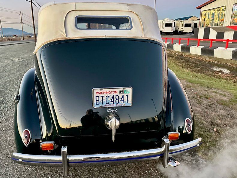 1939 Ford 4 Door Deluxe Sedan Convertible. DGC2906 VIN. 184972906. This car is a beauty! The paint and body are excellent...it appears to be black but it's really dark green. Tropical Green lacquer painted 1993, Original 16" Steel wheels, Original 16" Wheel Rings, Original Ford V8 Center Caps. 600 X 16" Wide white wall tires, Original Chrome Front & Rear Bumper, Original Stainless in show condition, Original Front/side glass, Original Rear taillight/headlight Lens, Original Banjo Steering Wheel. Original gauges, Original clock, Original factory installed heater. Top was replaced in 1993, The standard 6 volt system survived, Drive Train: Original 221 Flathead V8 - 85 HP, 3 Speed Manual Transmission. This car was driven by the original owner for 27 years in Massachusetts. The second owner, from Rhode Island, had a 40 car collection where he stored his cars in an environment-controlled facility - he purchased this car in 1966 - did annual maintenance and then the upgrades to paint, upholstery and top all to factory specifications in 1993. He had this car in his collection for 53 years. I have not found any signs of rust anywhere in this car. The floorpans look to be original with no signs of any patching. The engine runs smooth and the car drives great. The engine was given a tune up in 2019 along with a new brake master cylinder. The interior looks immaculate. I haven't had the chance to put very many miles on this car, but have really enjoyed what I have done so far. We will have this car serviced and safety checked soon, but I don't think it will need much. The car drives like it looks, smooth running, quiet, easy steering and shifting. This would be a great car for any parade or car show. Very rare, may be only a couple of hundred of this original condition model left in the world. We sold this 1939 in 2020 and we just bought it back only because he ran out of storage area we were happy to get it back it's a great car hardly any miles on it and he went through the brakes even replace the brake lines so that's all new. Black Market Speed Just serviced and safety checked the 39 It's ready to go.