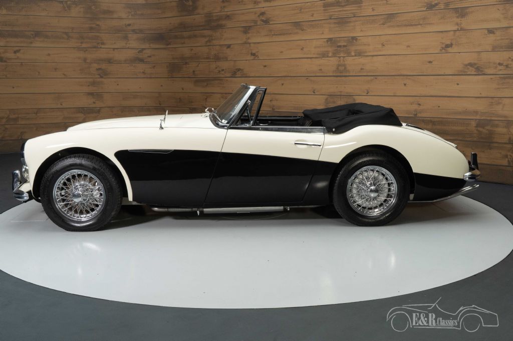Austin-Healey 3000 MK3 in Old English White for sale The Austin-Healey 3000 MK3 that we offer for sale here is executed in the beautiful colour Old English White. To give the car extra character, a black surface on the side has been chosen, which makes it a real eye-catcher. The chrome wire wheels and accessories complete the classic look. The interior is in a neat, original condition and has a walnut dashboard. The upholstery shows some minor signs of wear here and there. A new soft top has been installed that you can fold in an instant so that you can enjoy the outdoors while touring.