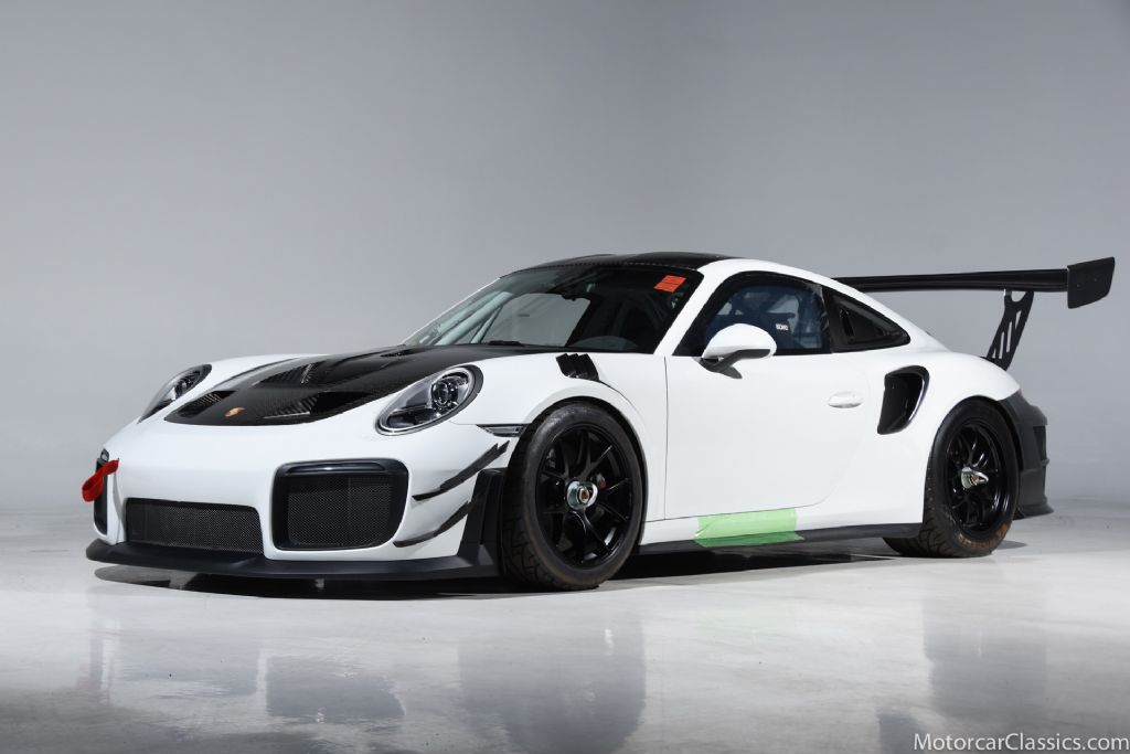 2019 Porsche 911 GT2 RS Clubsport for sale! Motorcar Classics is pleased to offer this truly unique and completely factory built Porsche 911 GT2 RS Clubsport. This is a fully optimized racing version of the GT RS and limited to only 200 examples built worldwide! Our car is #16 off the line and still has many of its factory seals and wrappers on it with only 2 miles! Presented in Pure White with exposed carbon fiber and black Recaro carbon fiber bucket seats, this RS is powered by a 3.8L twin turbo flat six-cylinder engine producing an impressive 700bhp and paired with a seven-speed PDK dual-clutch transaxle. Unlike the street-legal GT2 RS, the Clubsport benefits from a freer-flowing, unique exhaust system, while the entire car is also assembled in Porsche's dedicated motorsport facility at Flacht alongside the 911 GT3 Cup, 911 RSR, and, until recently, the Le Manswinning 919 Hybrid. Additional equipment includes a carbon-fiber hood and decklid, an air-jack system, 18 forged wheels, a fire-suppression system, a six-point harness, air conditioning, and a Cosworth digital instrument cluster. This is the only 2019 GT2 RS Clubsport on the market to our knowledge and one of the finest track cars available today, for either thrilling track use or display in the finest collections of limited-production Porsches. Do not miss your opportunity to own a piece of Porsche racecar history!