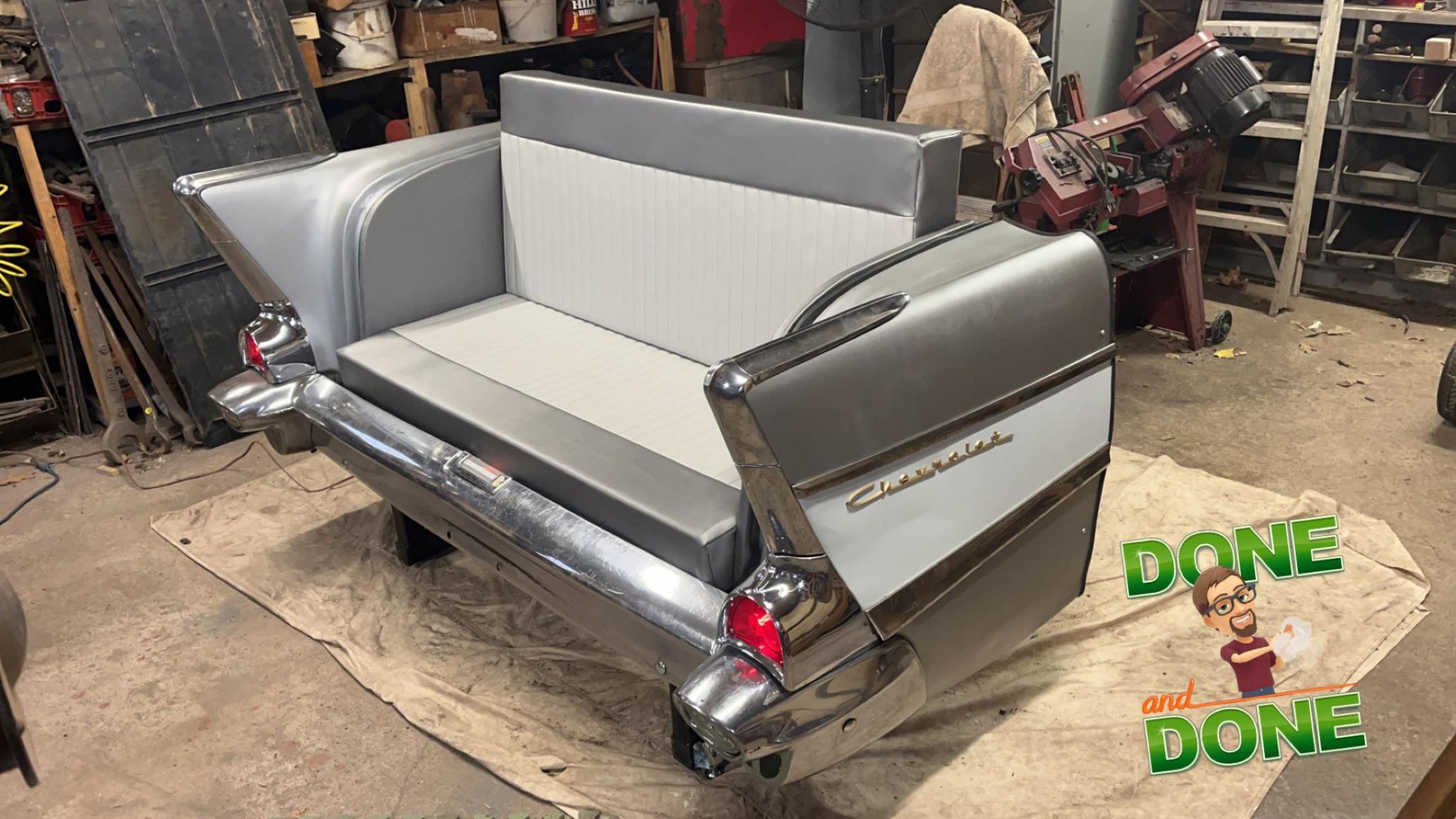 You are looking at a rear cut from a '57 Ford Fairlane. We were gonna make a desk or couch from this cut. After taking final measurements we realize that it would not fit in rec room. Just too big for our house. Anyways it can be used for an out door rear canopy of your shop or garage, business etc. I have way more invested in this than the $1,000 I'm asking. I bought car at auction 550, hauled from Duluth to Rochester 350, stripped from car 500, sand blasted and primed 400. So you can see this adds up fast. $1,000 is cheap today for this rear cut. I would look at delivering to your door as well. Maybe trade other neat parts? Guns, etc. I have uploaded a few pics of these couches/seat/bench done. A seller up in Hinckley,Mn sell these for $4000 and more