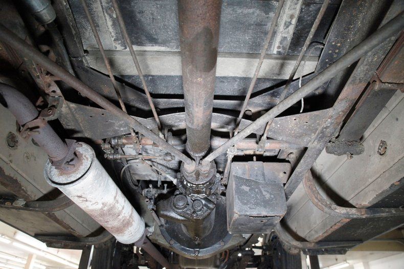 Under the cowled hood resides the fully restored and rebuilt engine which is all rust free and looking slightly patinaed, but real nice. It is a 255.1ci inline 6 cylinder which will produce 70hp. This mill now has updated bearings and updated oiling system to work properly with modern fuel and oil. It is fed by a 1-barrel carburetor and there is a 3-speed manual transmission on the back. The rear axle weighs in at 4.54 gearing. Stock exhaust is on as well.
