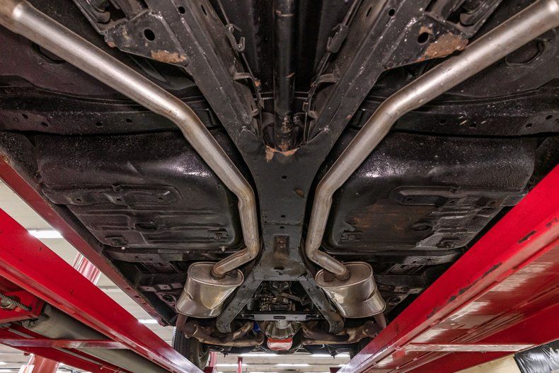 As stated above, horsepower is furnished by the famous 409ci 'W-Series' engine. The 2x4 intake manifold is a GM piece and the dual Carter AFB carburetors appear to be correct for a 409 engine, however there are no carb ID tags (the rear carb has idle adjustments and a heat choke, which was common). The valve train appears to be managed by flat-tappet hydraulic lifters and exhaust is routed through tube headers. Output for these engines varied depending on compression and cam, but most dual-quad motors were conservatively rated at 380-409hp and 425lb/ft. It is backed by a Muncie 4-speed manual transmission that is fitted with a Hurst Comp+ shifter.