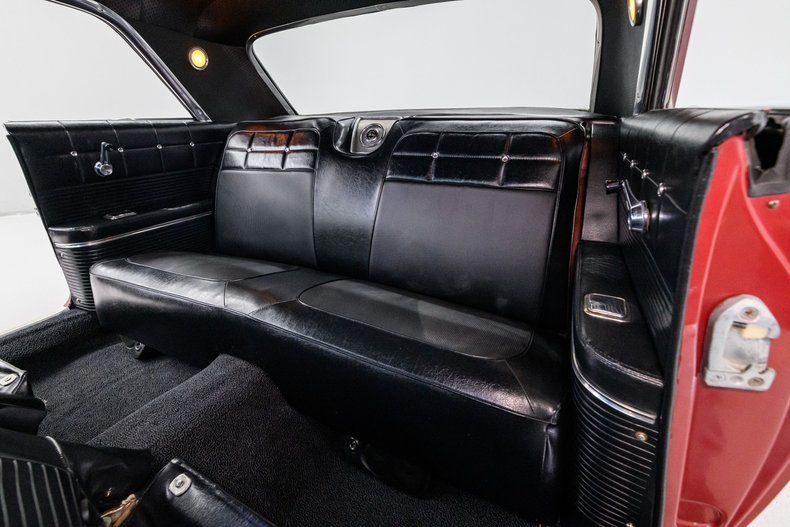 One of Chevrolet's best-looking full-size models, this stylish maroon hardtop is striking from any angle. Based on the data tag, we believe that the Chevy was an Impala Super Sport from the factory but was not likely an 'SS/409'. The engine has a block casting number that was used in the '63 - 64 models and casting numbers on other major drivetrain components do not coincide with a '62 '409' model. That said, the restoration was professionally done. The exterior is straight and solid and the respray of Honduras Maroon (original code 948 color) is in very good condition. It is accented by nice chrome, rear fender skirts and steel wheels (14x6") with SS 'knock-off hub' style wheel covers w/800x14 bias-ply whitewall tires.