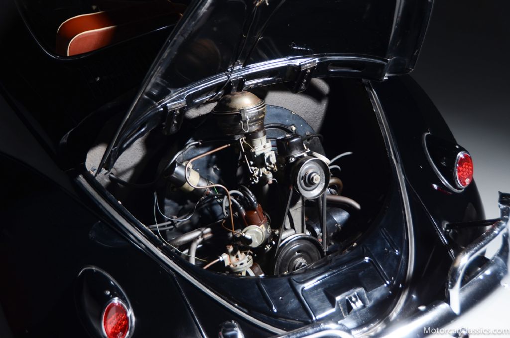 Everything on this Beetle is original. It has never been taken apart or restored. The paint, chrome, glass, upholstery; everything is VW factory original. Furthermore, everything works and the car runs and drives as well as it did in Tonys hands. It completed a two hour drive to our showroom.