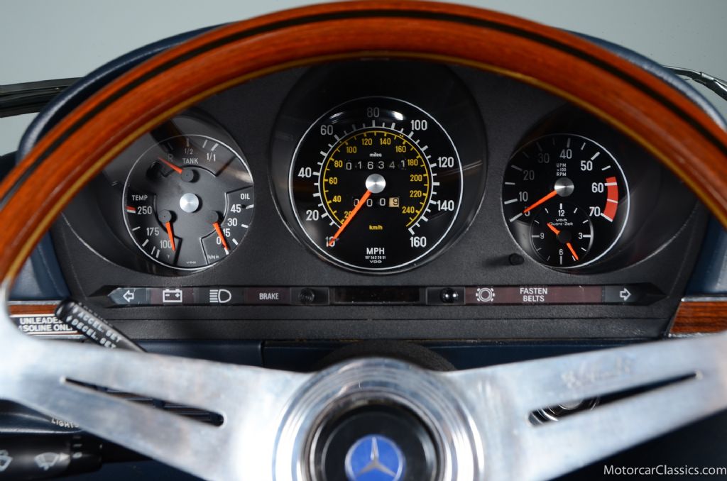 From a collectability standpoint, late-1970s 450 SLs have emerged as highly appealing entry points into classic Mercedes ownership, combining usable performance, strong parts support, and a still-accessible price point compared with earlier Pagoda SLs and later limited-production AMG models. Thoughtful color combinations like Diamond Blue over blue, along with period options such as the rear jump seat and color-coordinated soft top, tend to draw additional interest from enthusiasts seeking a car that both presents well and reflects correct-era specification. As interest in analog, V8-powered European grand tourers continues to rise, well-kept R107 450 SLs are increasingly viewed as enjoyable, drivable classics with solid long-term upsideespecially examples like this one that combine iconic styling, desirable options, and the enduring cachet of the Mercedes-Benz three-pointed star. Your inspection is invited!