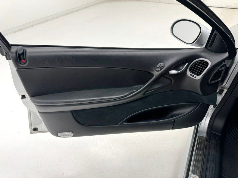 Fashioned from black curved molded vinyl and a strip of suede, the door panels are as aerodynamic as the exterior. High back extra bolster support buckets in black leather have an embroidered GTO in their uppers. These seats are power adjustable and in back is a 2 plus 2 bench setup stretching from B pillar to B pillar. In the center is a curved molded console that makes its way gracefully upward and melting into the dash. On its way is a Blaupunkt 6-disc AM/FM/CD radio, green screen readout for information and fan and temperature knobs. The dash borrows styling directly from Porsche with the overlapping red background circle gauges, and more green readouts, under a curved dash top visor. Black carpet for the floors and more molded panels covered with slightly fuzzy charcoal gray material for the headliner.