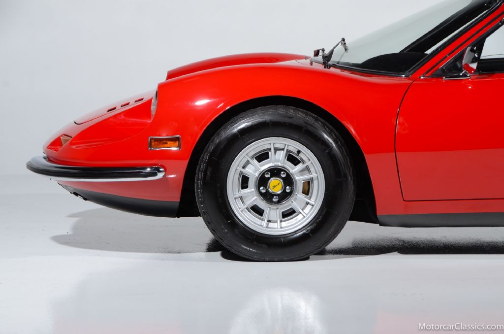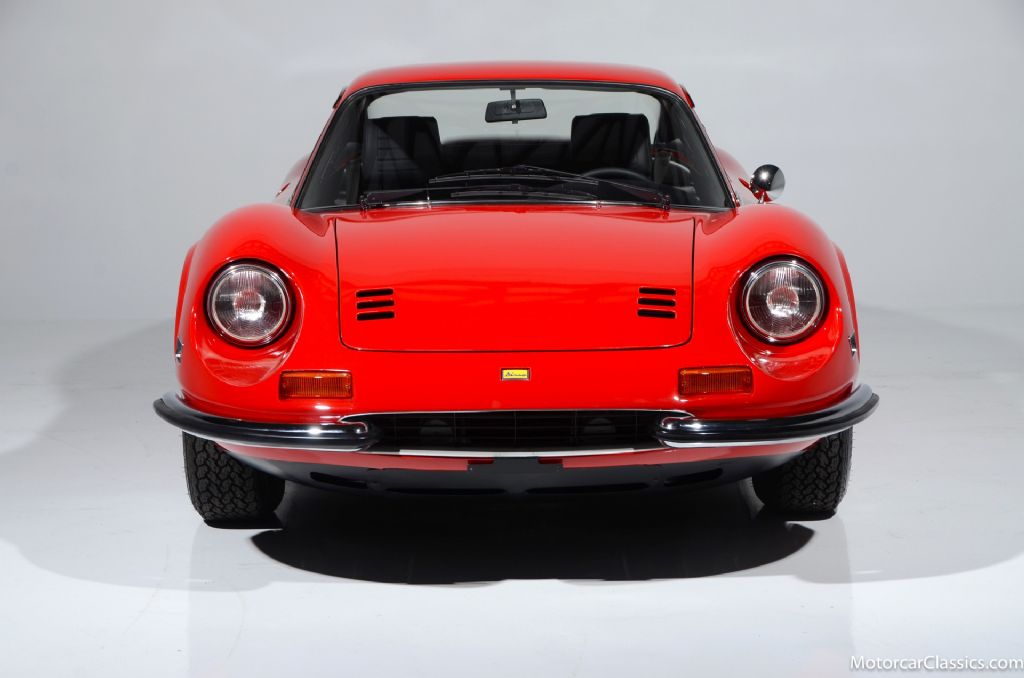 1972 Ferrari Dino 246 GT #3418 for sale! Motorcar Classics is proud to present this stunning 1972 Dino 246GT featured in Rosse Chiaro with black interior. It is reported to have been in only two collections during the past four decades.It has been restored with new paint, body gaskets, excellent glass and brightwork. The interior has fresh leather seats and mouse hair dashboard, correct carpets, power windows and the original radio. The engine compartment and undercarriage are fully detailed. Mechanically the Dino has excellent mechanicals, correct compression, a smooth shifting transmission, and replaced shocks and ball joints. Includes books and tools. Everything is right with this Dino and it will earn its new owner pride of place in any concours or touring event.