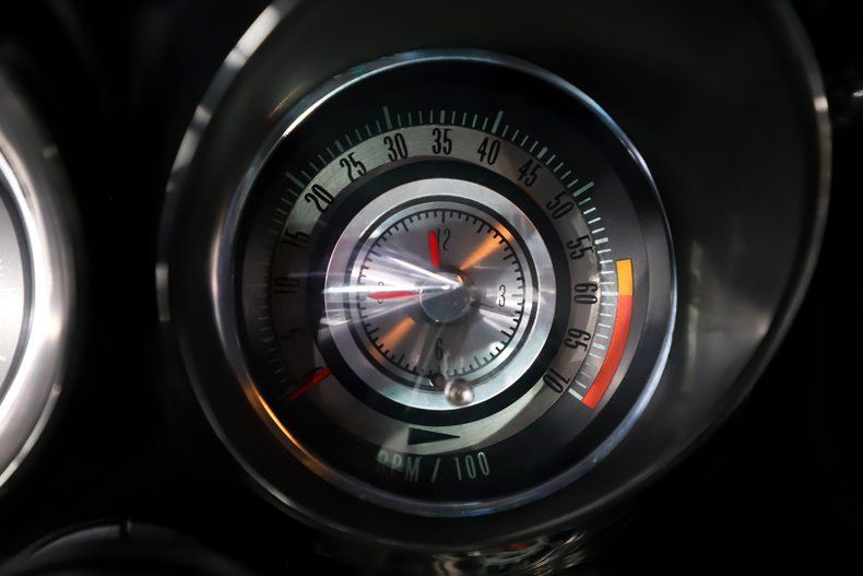 INTERIOR: Restored like brand new and it a factory born deluxe interior with factory gauges, console, tilt wheel and an extremely rare AM-FM multiplex stereo system. A deluxe interior includes molded door panels, upgraded upholstery, wood grain trim and trim around the pedals. It also has a vintage Stewart Warner oil pressure gauge below the dash. From carpet to headliner, it is in excellent condition.