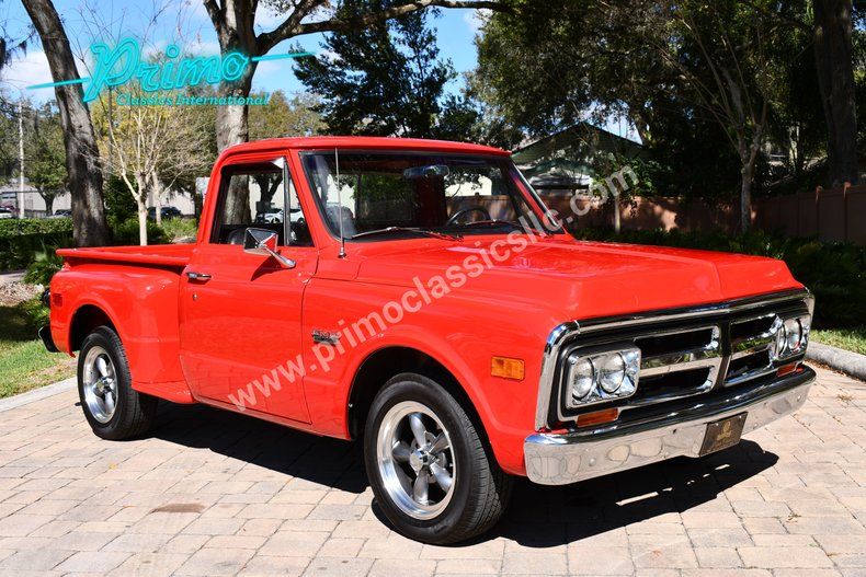 Spectacular Frame Off Restored 1972 GMC Pickup Short Bed Step Side :: Powered by 454ci V8 Engine, Automatic Transmission, High Gloss Flame Red Exterior, Two-Tone Deluxe Black and Red Houndstooth Interior, Vintage Air Conditioning, Power Steering, Power Brakes, Power Windows, Chrome Wheels, Dual Exhaust, Tilt Wheel, Factory Spec Sheet Still on Glove Box Door, Previously Part of the Bill Richardson Collection & Museum, Per Previous Owner 982 Miles Since Restoration Which was Completed in 2018, Simply Better then New In Everyway!! For more information call 863-899-1565 or 863-226-8590 or email sales1@primoclassicsint.com