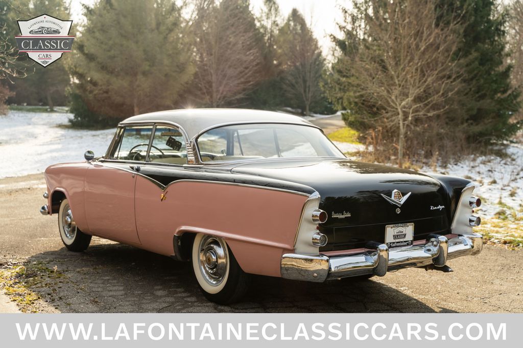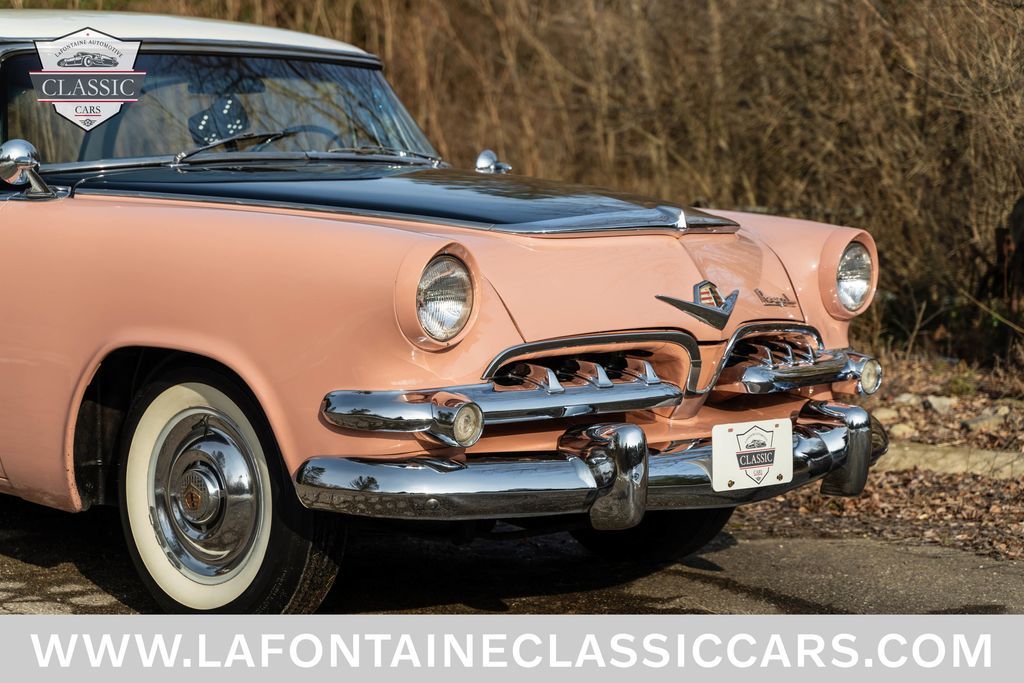 This Royal Lancer is powered by a Red Ram V8 engine with automatic transmission and power steering. It's finished in beautiful two-tone rose and black with a new interior and amazing chrome and trim. It rides on correct whitewall tires for that mid-50s look with amazing lines and chrome. This two-family owned car underwent a recent light restoration. It runs and drives as good as it looks. Call for more information at 248-714-2110 or email us at Inquiry@LaFontaineClassicCars.com