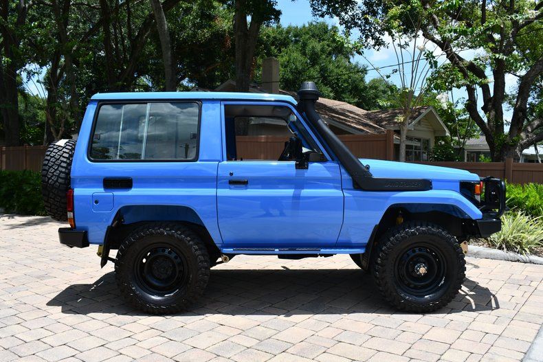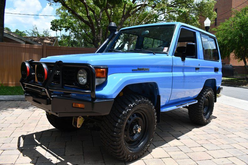 Spectacular 1988 Toyota Land Cruiser LX Custom 4x4 :: 33,219 Miles (Odometer Reads 53,461 Actual Kilometers), Powered by 4.0L Inline 6 Cylinder Engine, 5 Speed Manual Transmission, Blue Exterior over Brown Interior, Power Steering, Power Brakes, Air Conditioning, ARB Brush Guard, ARB Intensity Solis Lights, Snorkel, Pioneer Sound System, 285/70 R17 BF Goodrich Mud Terrain T/A Tires, Call Monica for more information 863-899-1565 or email sales1@primoclassicsint.com