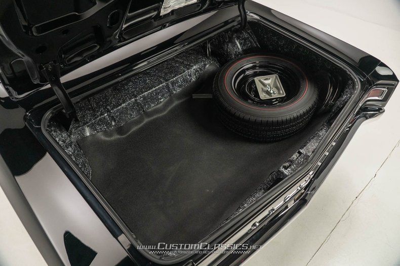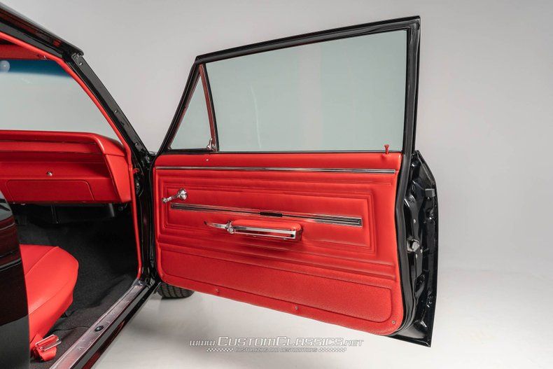 METICULOUSLY RESTORED BEAUTY The attention to detail on this Chevelle's restoration is remarkable. The body was laboriously straightened as you can see in our photos before being refinished in rich black paint that looks deep and wet from every angle. All chrome and trim were refinished or replaced for a brilliant shine. The interior received equal attention in contrasting bright red vinyl including the front bench, door panels, headliner, and dash that includes a factory "knee-knocker" tachometer. Creature comforts include a Retrosound radio with Bluetooth/SiriusXM with Chevelle Logo Pack, paired with Retrosound 6x9" Speakers with Neodymium Magnets. Other standout features include a Hurst chrome shifter with a white 5-speed shift ball as well as a beautifully finished splatter-painted trunk that includes a full matching redline spare tire and jack.