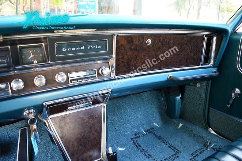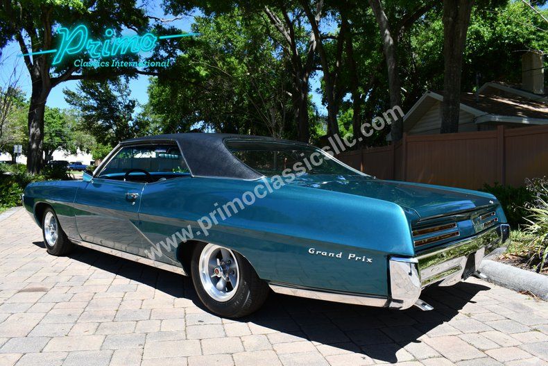 One Year Only 1967 Pontiac Grand Prix :: Powered by 400ci V8 Engine w/ Tri Power Carburetors, TH400 Automatic Transmission, Linden Green Metallic Exterior w/ Black Vinyl Top, Teal Interior, Bucket Seats, Factory Console, Hide Away Headlights, 56,705 Actual Miles, Car Is An Amazing Classic Pontiac, Runs, Drives, & Looks Amazing!! For more information call (Monica) 863-333-8286, (Danny) 863-944-8755, (Dan) 863-226-8590, (Jacob) 863-899-1565 or email sales1@primoclassicsint.com